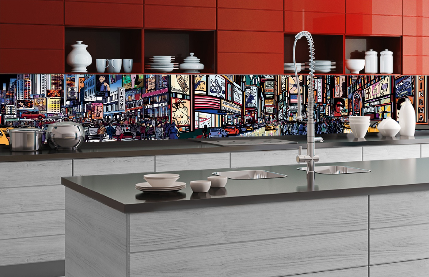 Küchenrückwand Folie - Times Square 350 x 60 cm