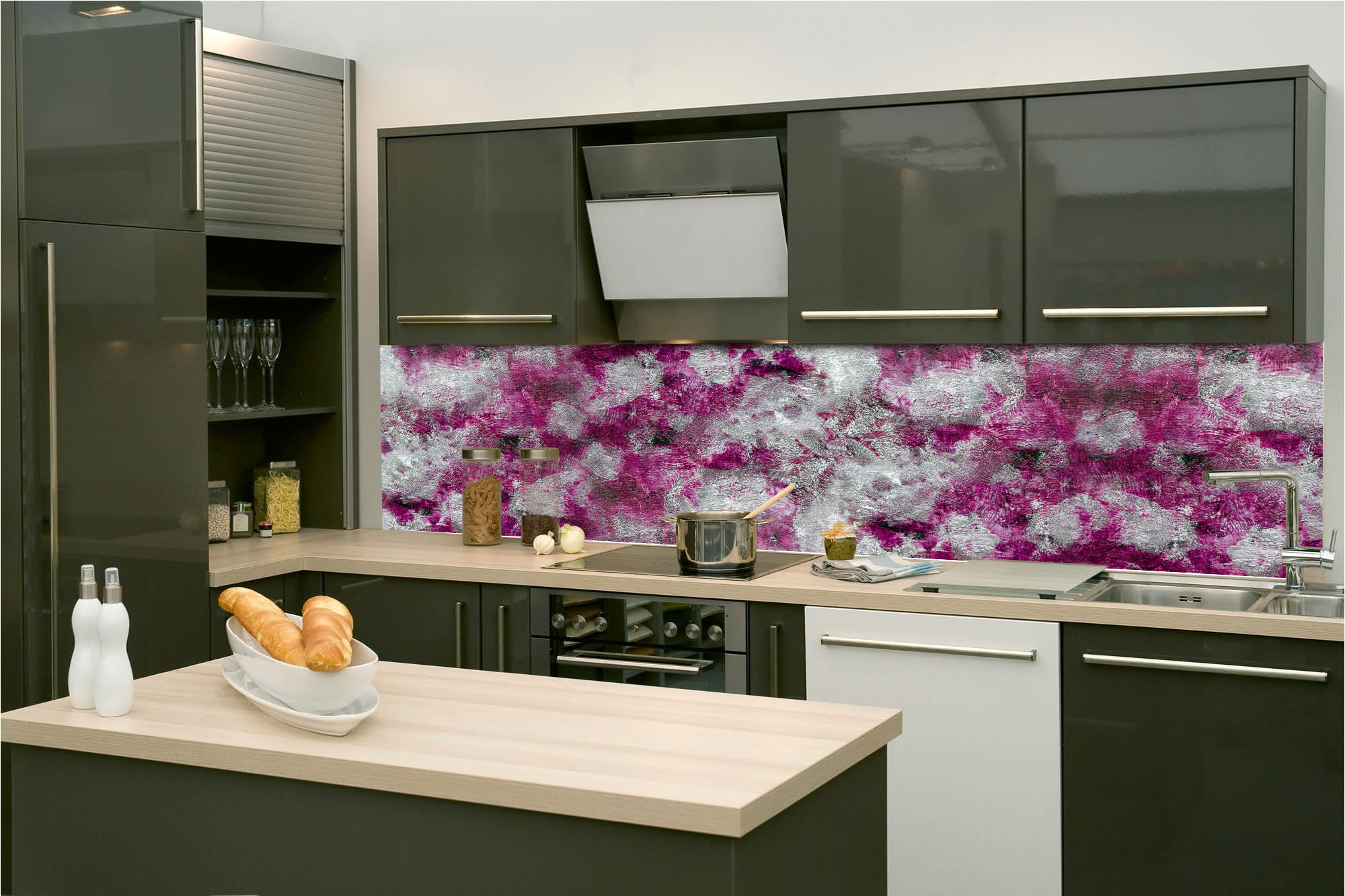 Die neusten Trends im Bereich Küchengestaltung machen auf selbstklebende Fototapeten für die Küchenrückwand aufmerksam. Anstelle einer Fliesenwand in der Küche kann die Rückwand mit einer Folie bedeckt werden.