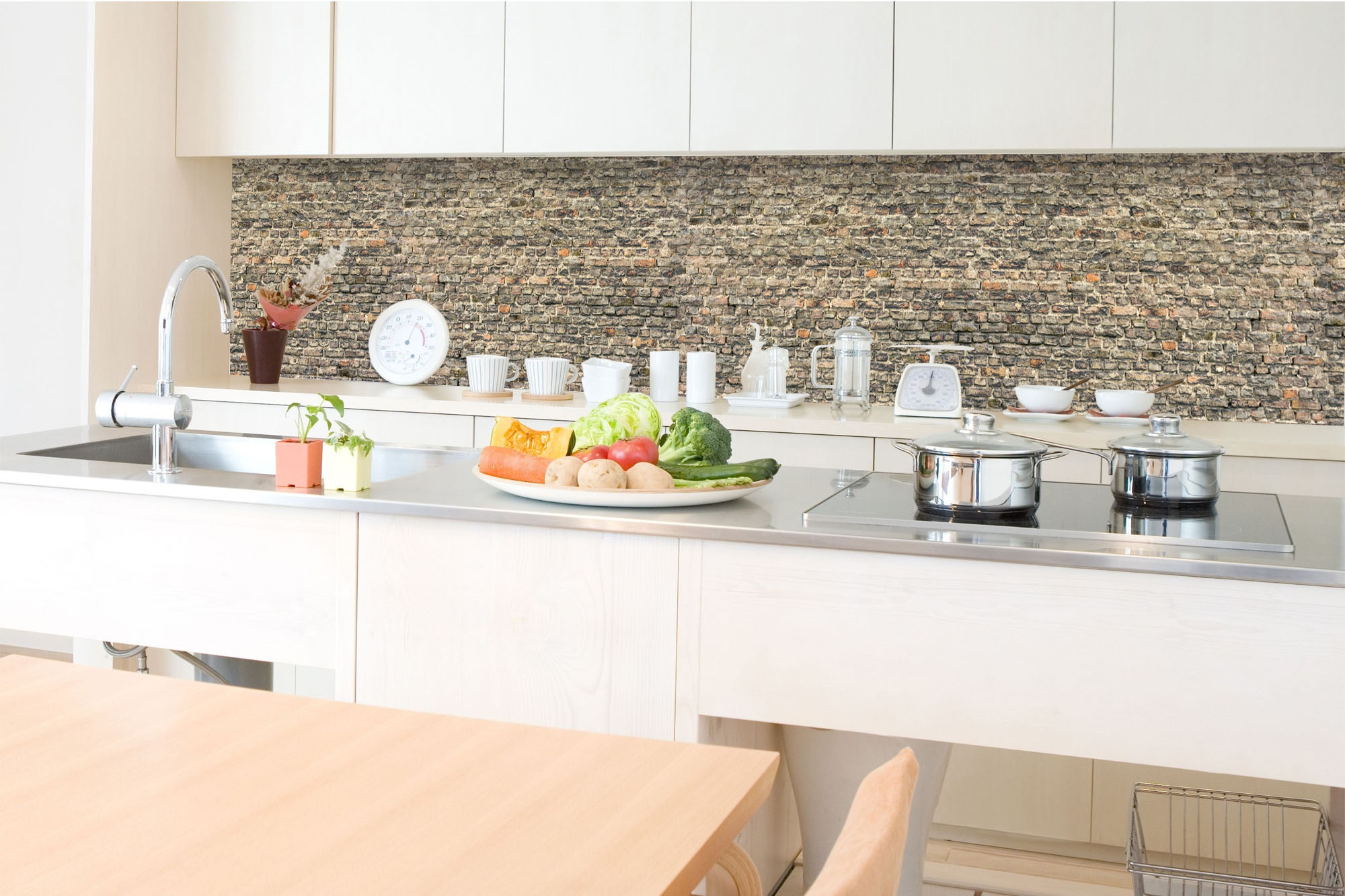 Küchenrückwandfolie lässt sich ausschließlich auf die nicht-saugfähige Unterlage kleben (Glas, Holz, keramische Fließen).