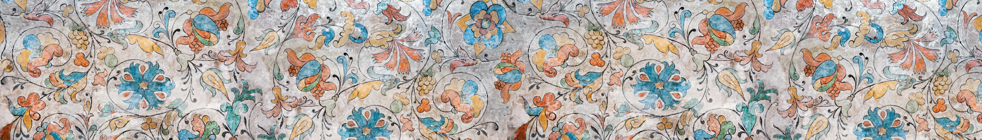 Küchenrückwand Folie - Antike Wand Mit Blumenfresken 420 x 60 cm