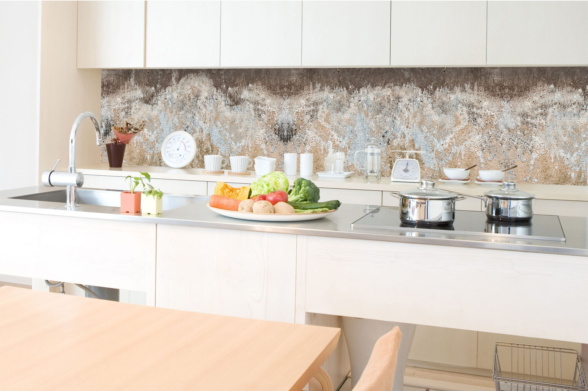 Küchenrückwandfolie lässt sich ausschließlich auf die nicht-saugfähige Unterlage kleben (Glas, Holz, keramische Fließen).
