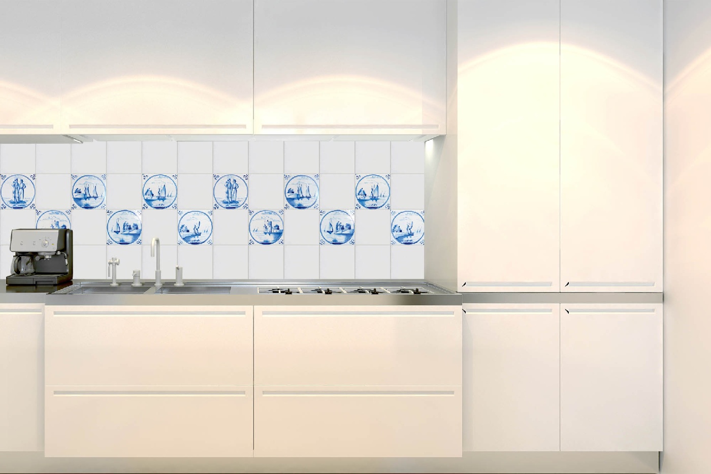 Küchenrückwandfolie lässt sich ausschließlich auf die nicht-saugfähige Unterlage kleben (Glas, Holz, keramische Fließen).
