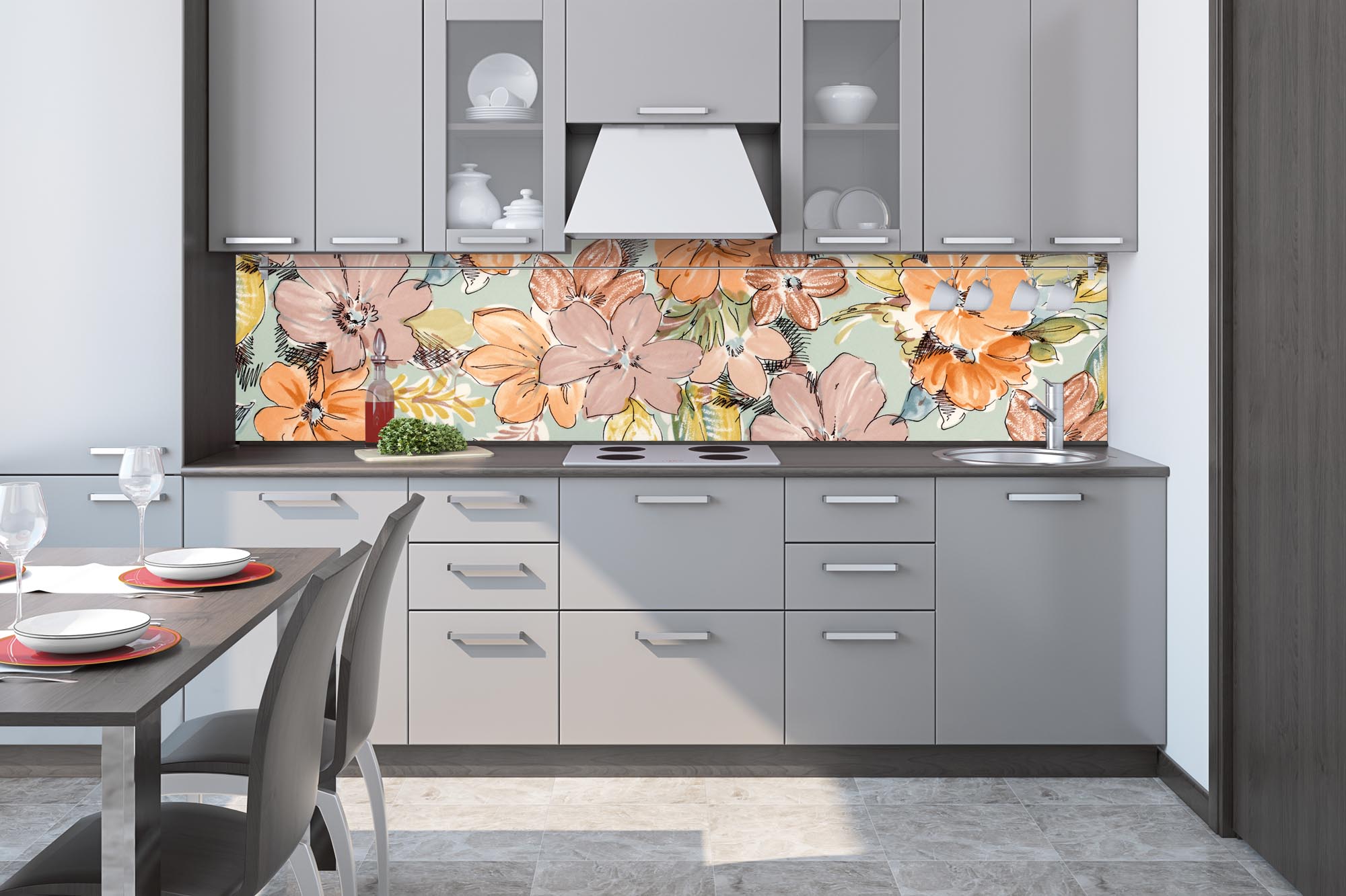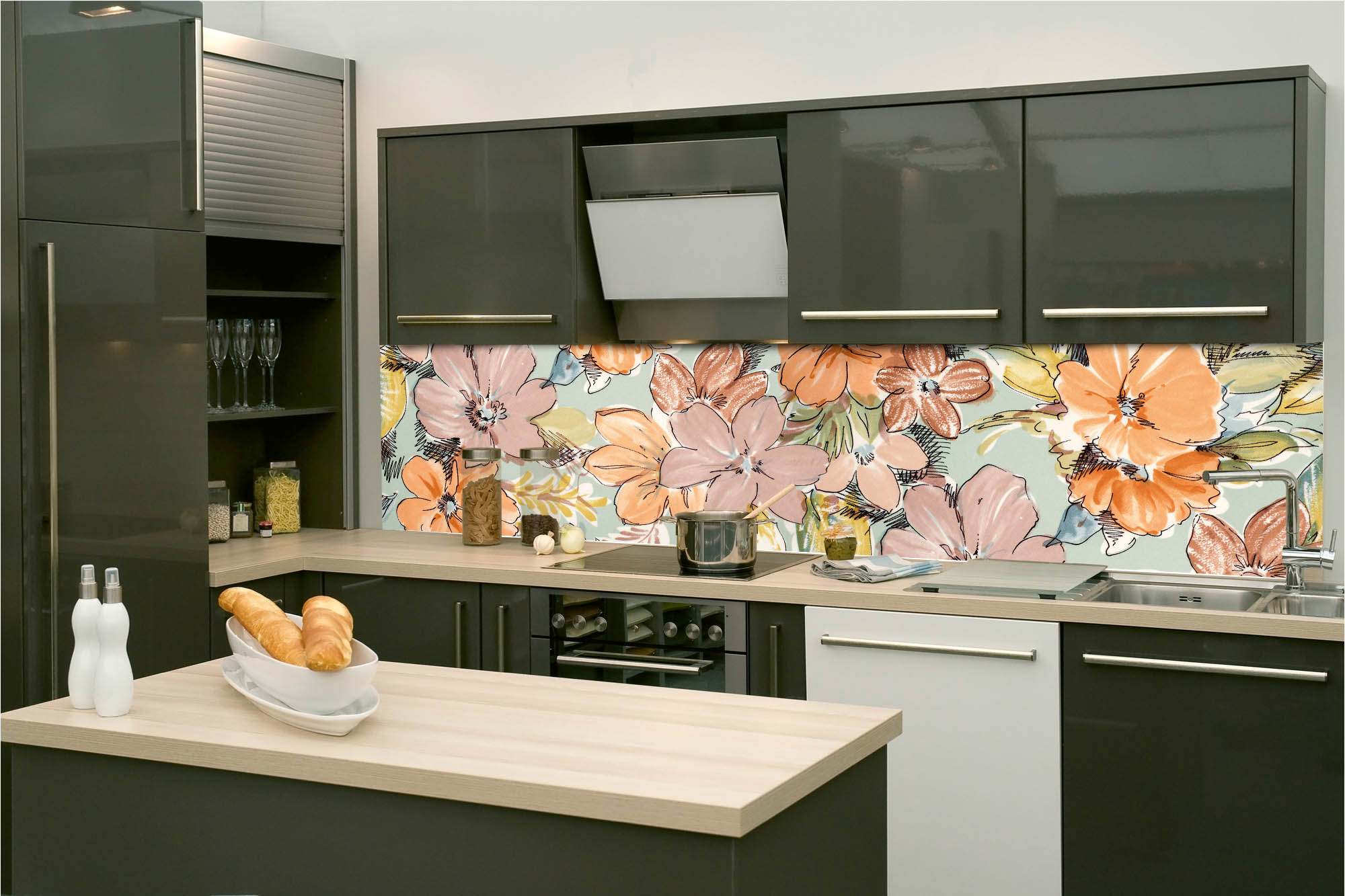 Die neusten Trends im Bereich Küchengestaltung machen auf selbstklebende Fototapeten für die Küchenrückwand aufmerksam. Anstelle einer Fliesenwand in der Küche kann die Rückwand mit einer Folie bedeckt werden.