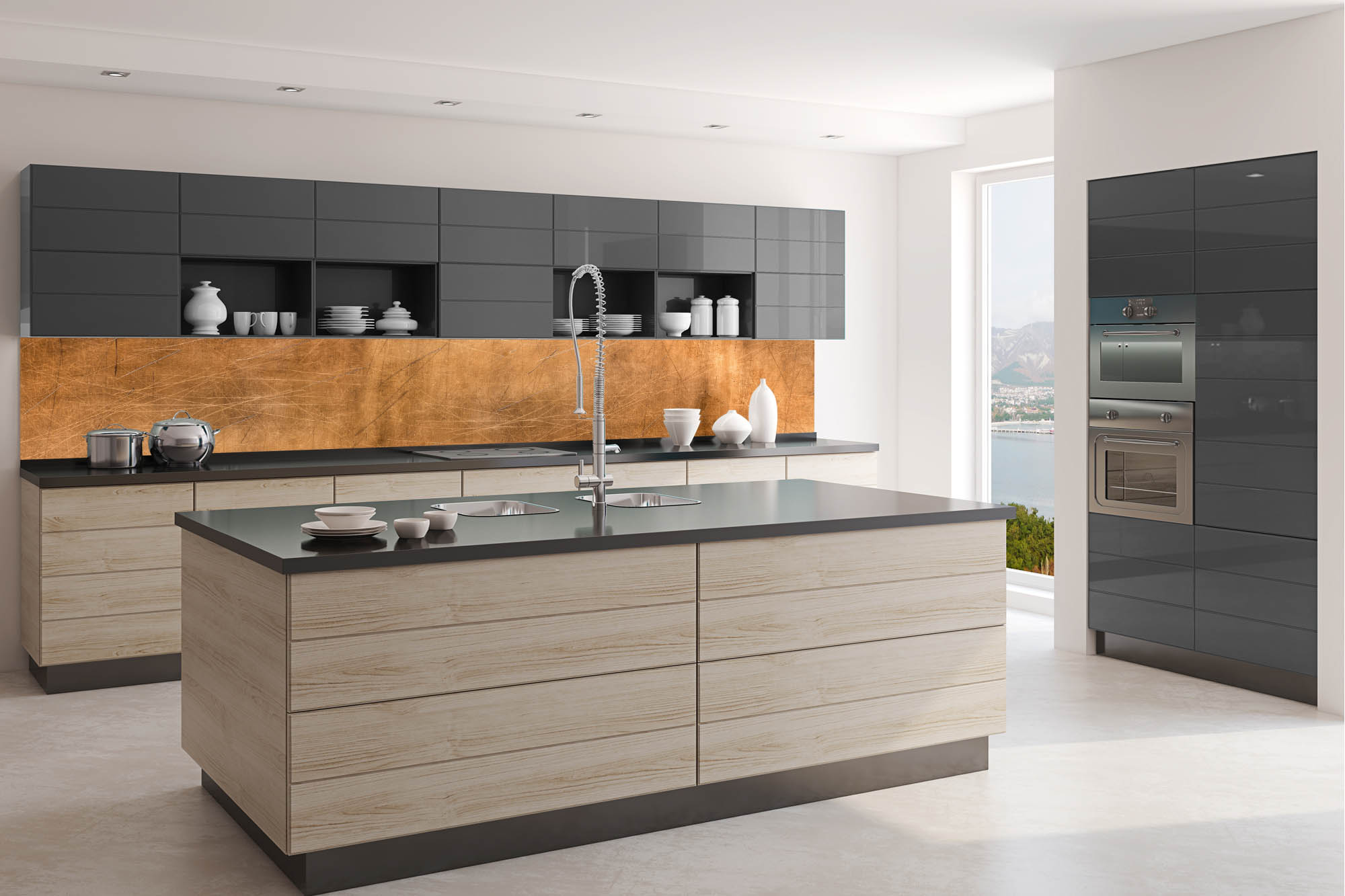 Die neusten Trends im Bereich Küchengestaltung machen auf selbstklebende Fototapeten für die Küchenrückwand aufmerksam. Anstelle einer Fliesenwand in der Küche kann die Rückwand mit einer Folie bedeckt werden.