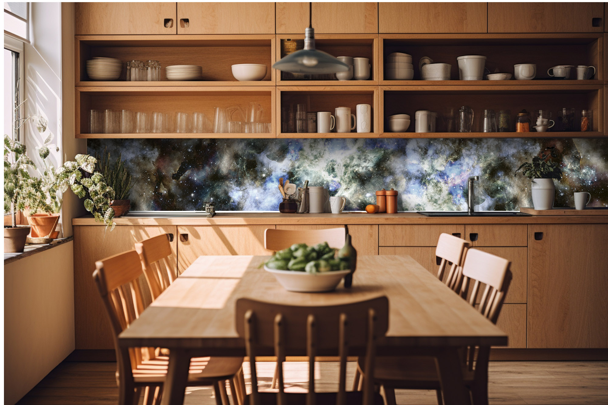 Die neusten Trends im Bereich Küchengestaltung machen auf selbstklebende Fototapeten für die Küchenrückwand aufmerksam. Anstelle einer Fliesenwand in der Küche kann die Rückwand mit einer Folie bedeckt werden.