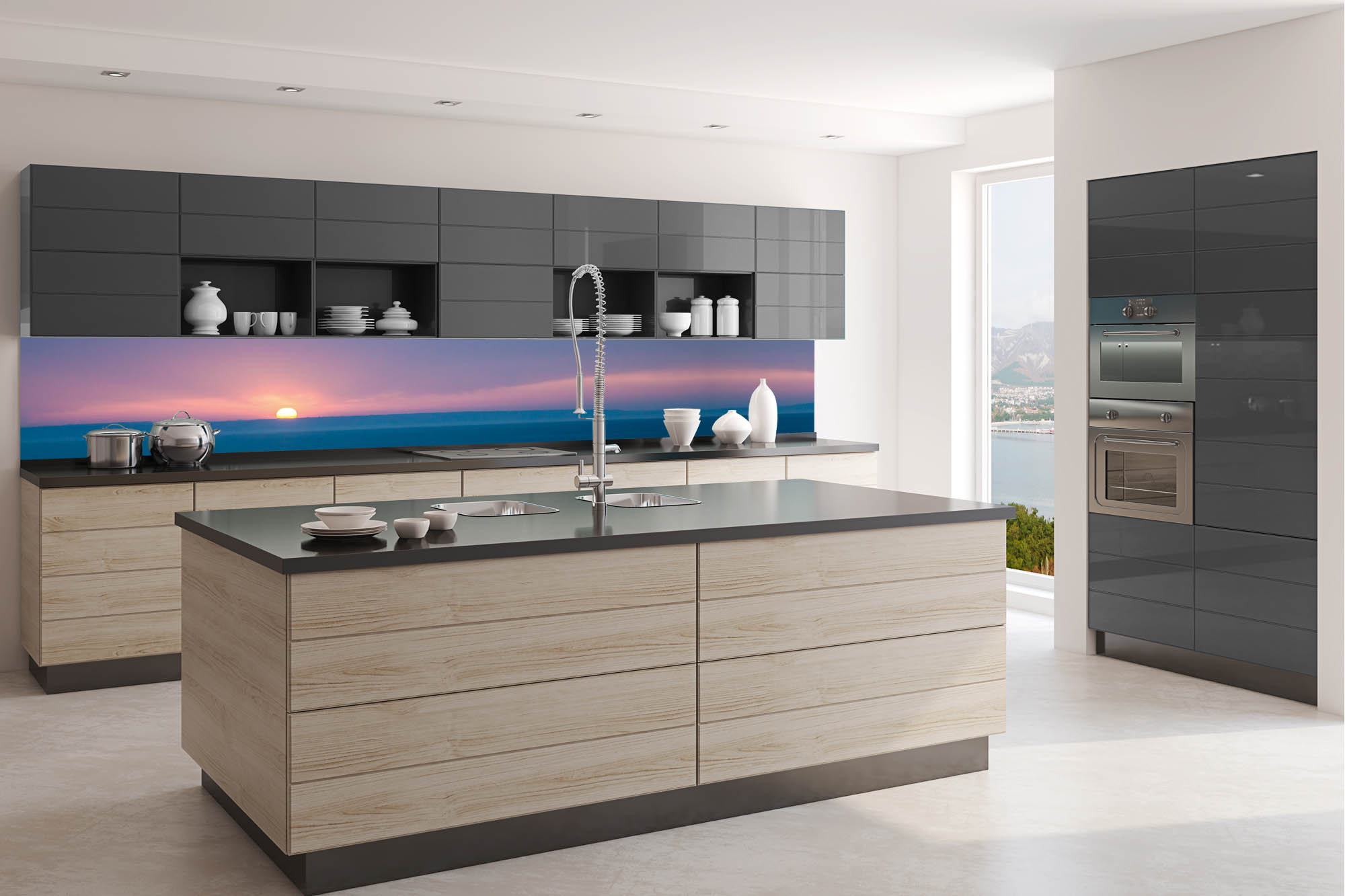 Die neusten Trends im Bereich Küchengestaltung machen auf selbstklebende Fototapeten für die Küchenrückwand aufmerksam. Anstelle einer Fliesenwand in der Küche kann die Rückwand mit einer Folie bedeckt werden.