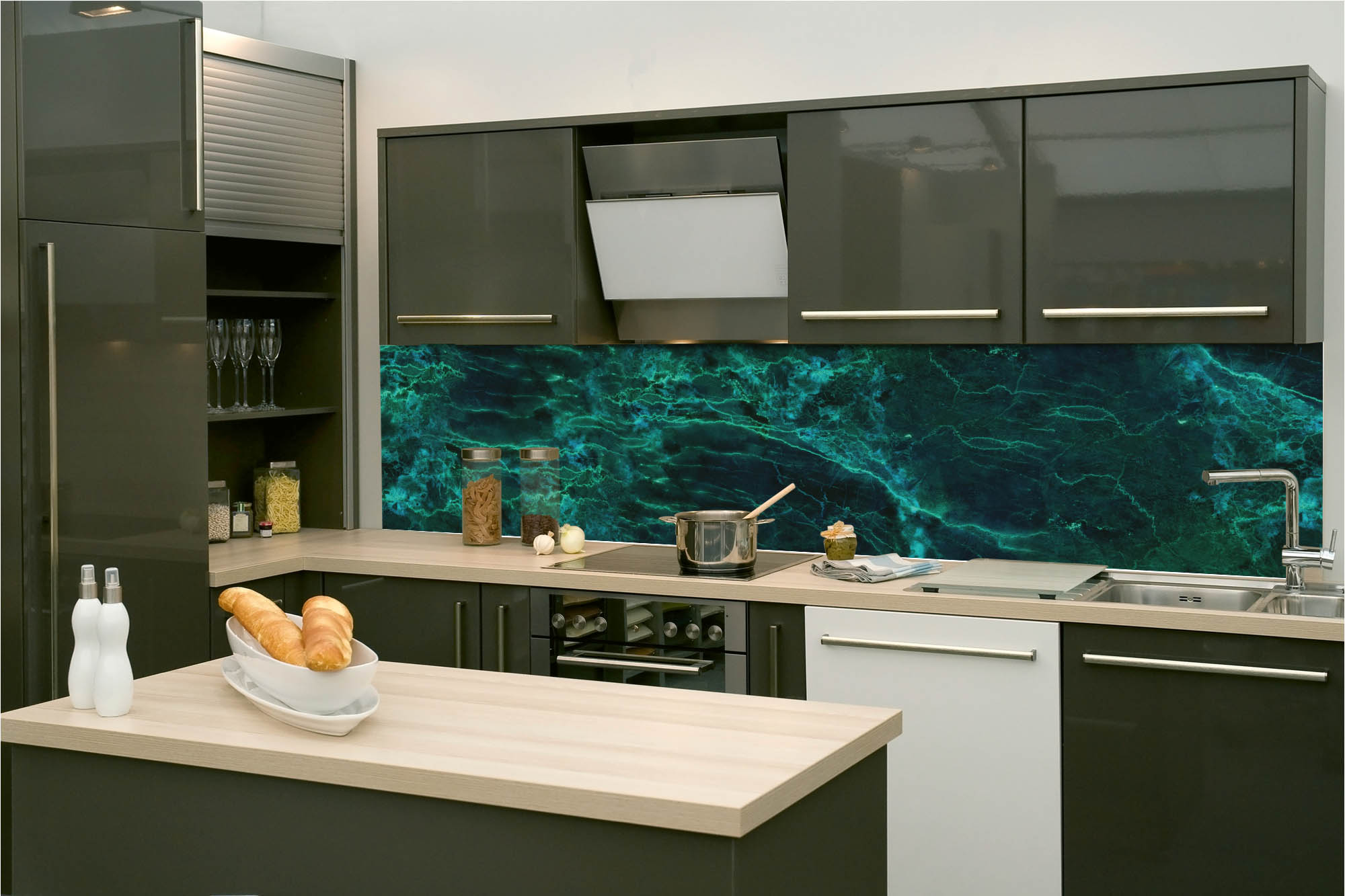 Küchenrückwand Folie - Dunkelgrüne Marmorstruktur 260 x 60 cm