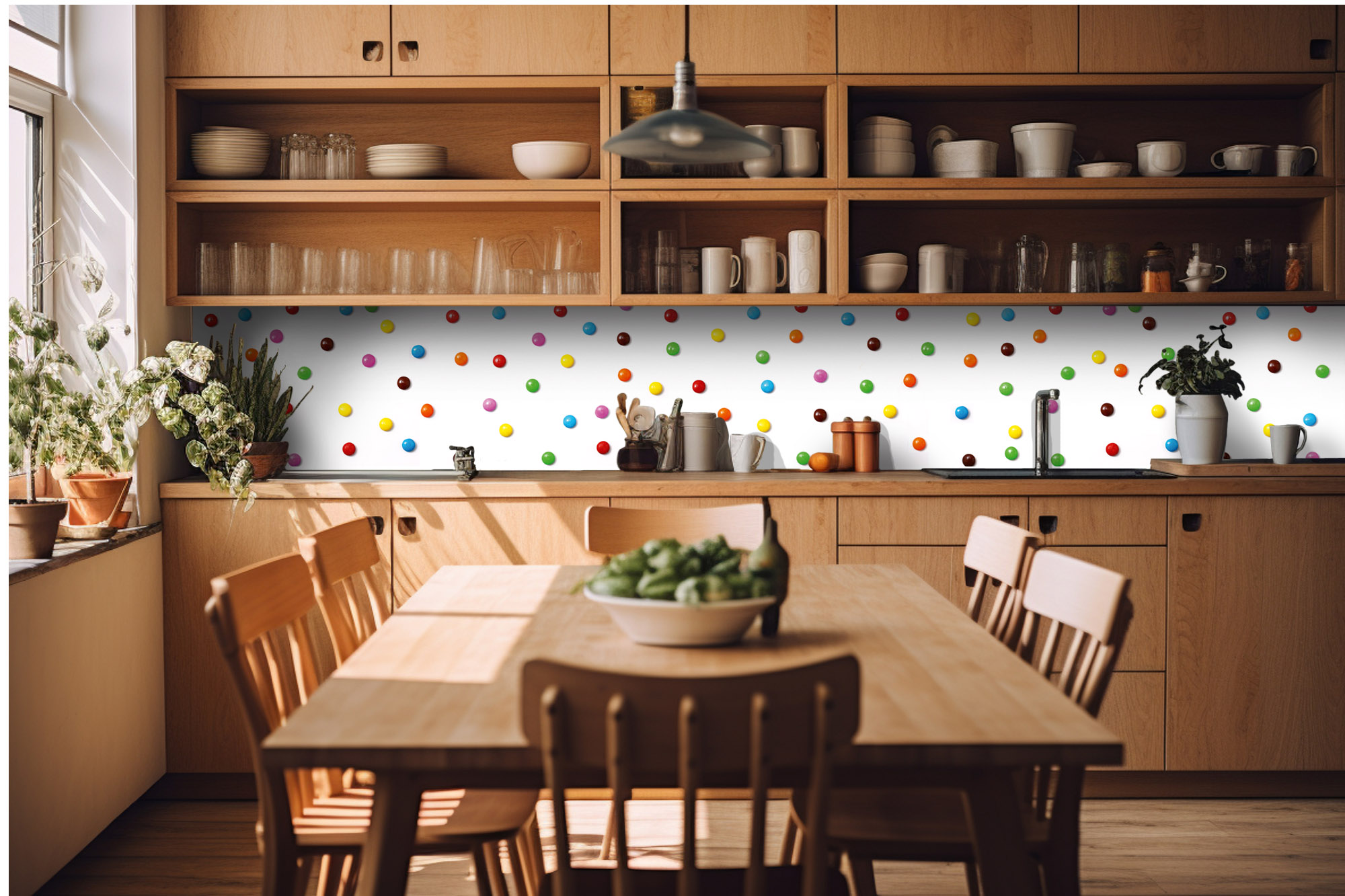 Küchenrückwandfolie lässt sich ausschließlich auf die nicht-saugfähige Unterlage kleben (Glas, Holz, keramische Fließen).