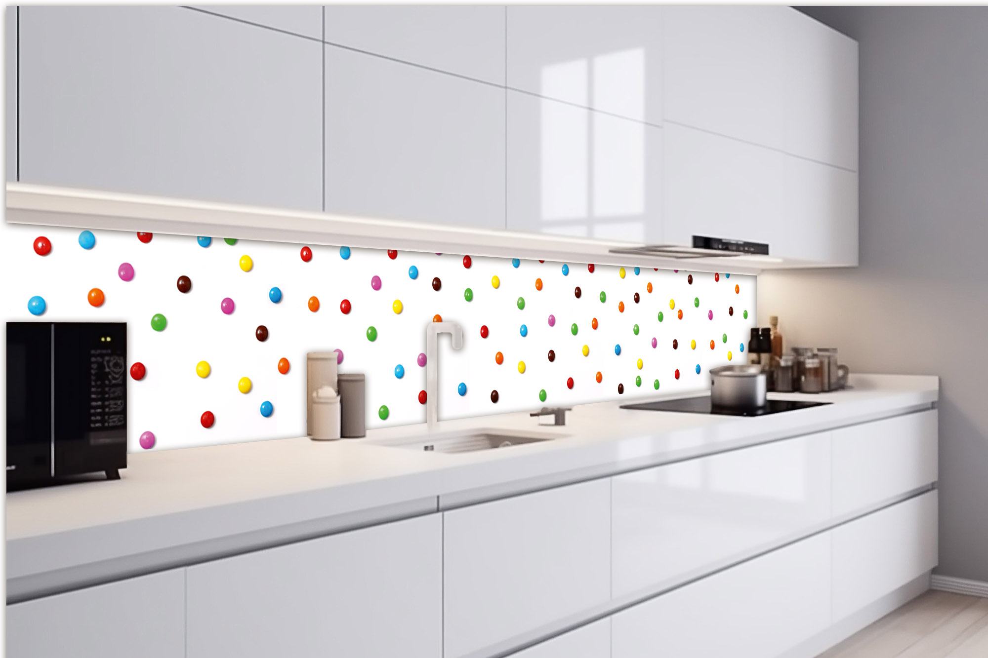 Die neusten Trends im Bereich Küchengestaltung machen auf selbstklebende Fototapeten für die Küchenrückwand aufmerksam. Anstelle einer Fliesenwand in der Küche kann die Rückwand mit einer Folie bedeckt werden.