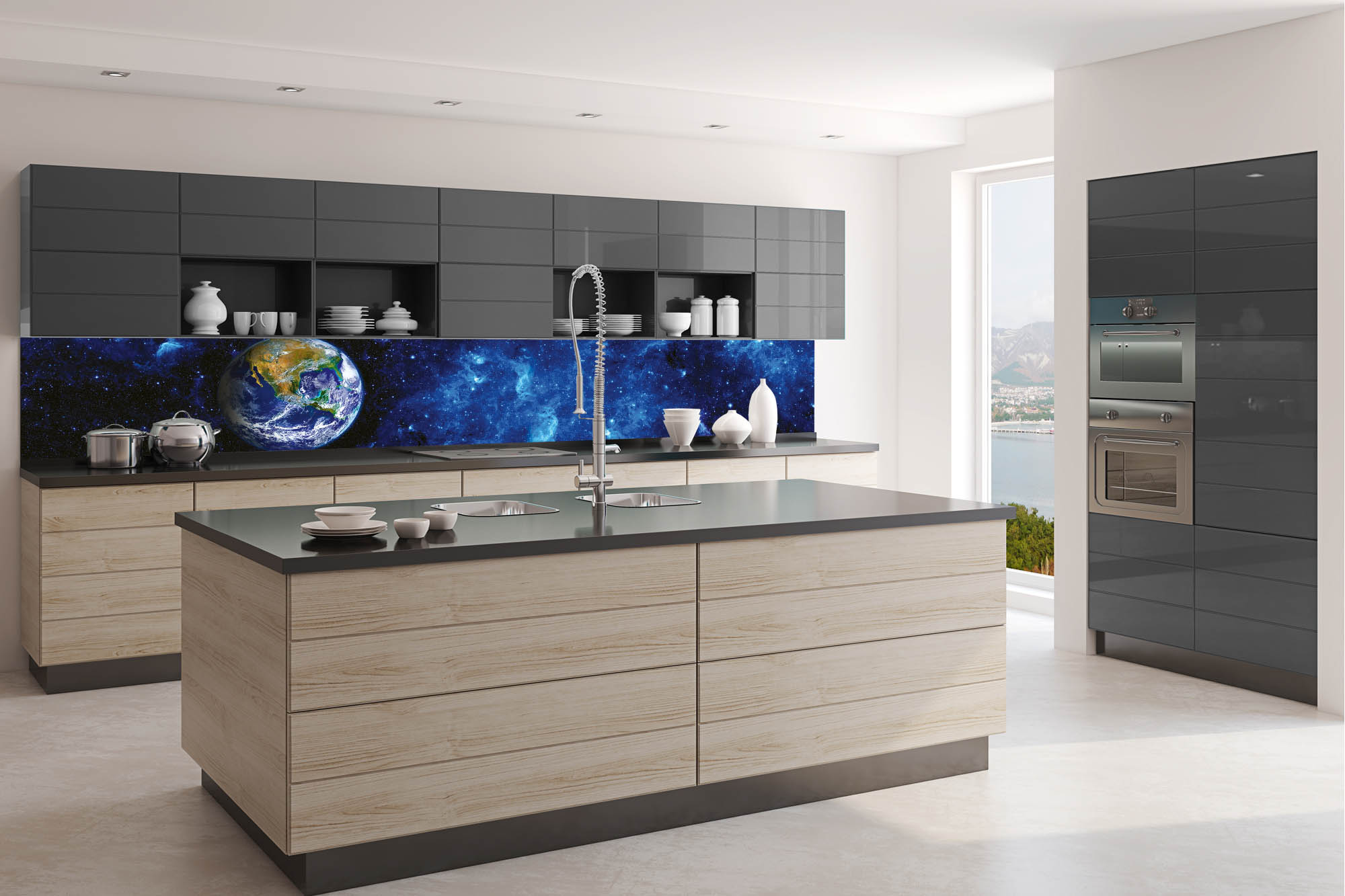 Küchenrückwand Folie - Erde Aus Dem Weltraum 350 x 60 cm