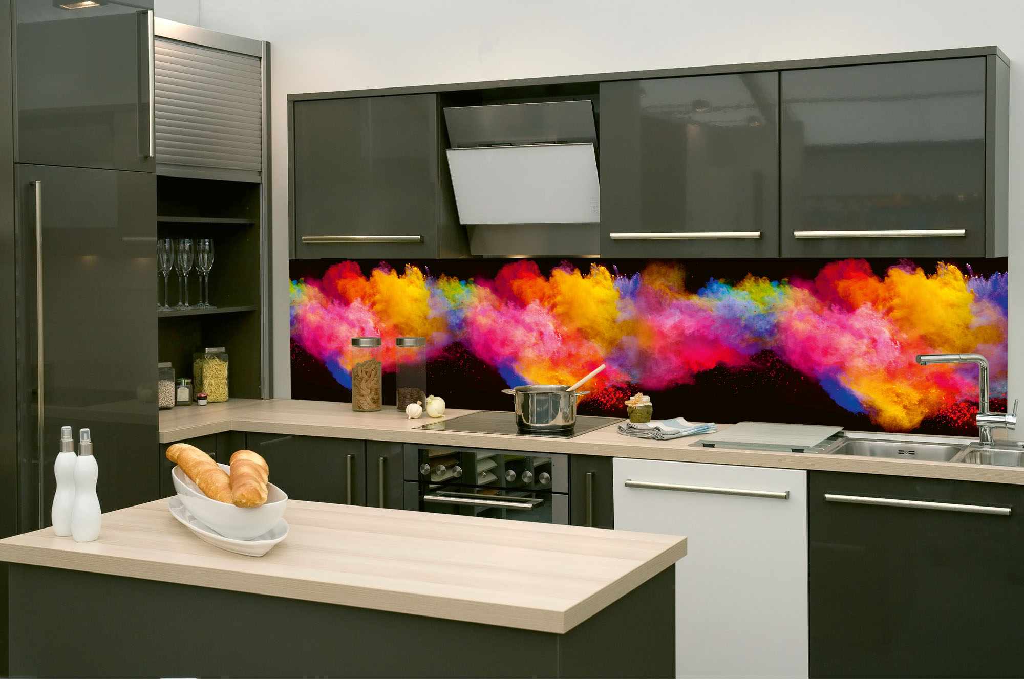 Küchenrückwand Folie - Explosion Von Farbigem Pulver 260 x 60 cm