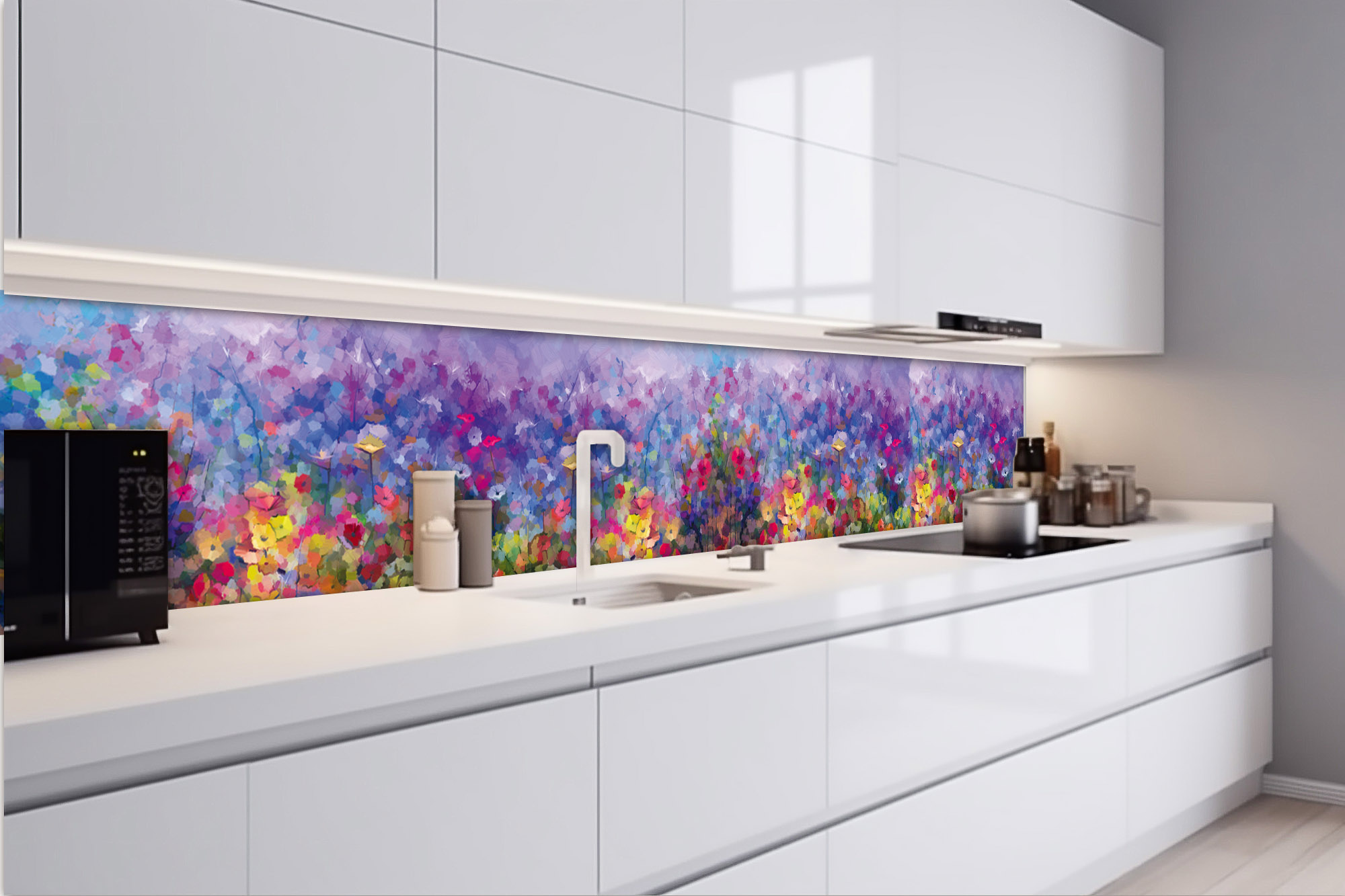 Küchenrückwand Folie - Farbenfrohes Ölgemälde 420 x 60 cm