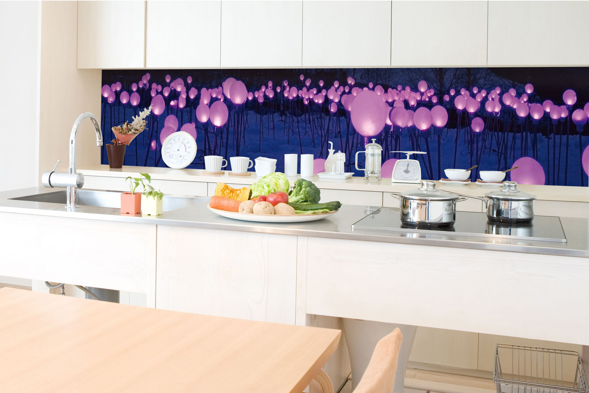 Die neusten Trends im Bereich Küchengestaltung machen auf selbstklebende Fototapeten für die Küchenrückwand aufmerksam. Anstelle einer Fliesenwand in der Küche kann die Rückwand mit einer Folie bedeckt werden.