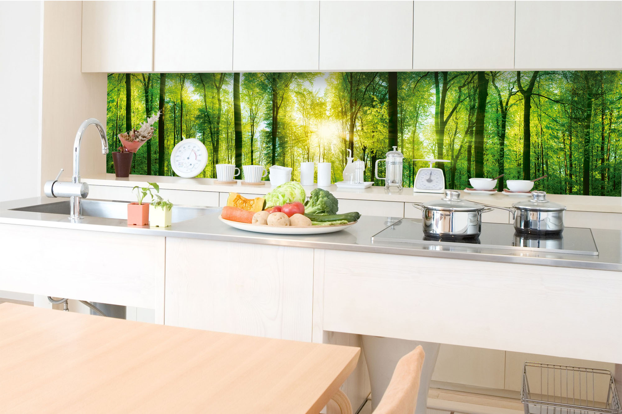 Küchenrückwand Folie - Frische Grüne Bäume 350 x 60 cm