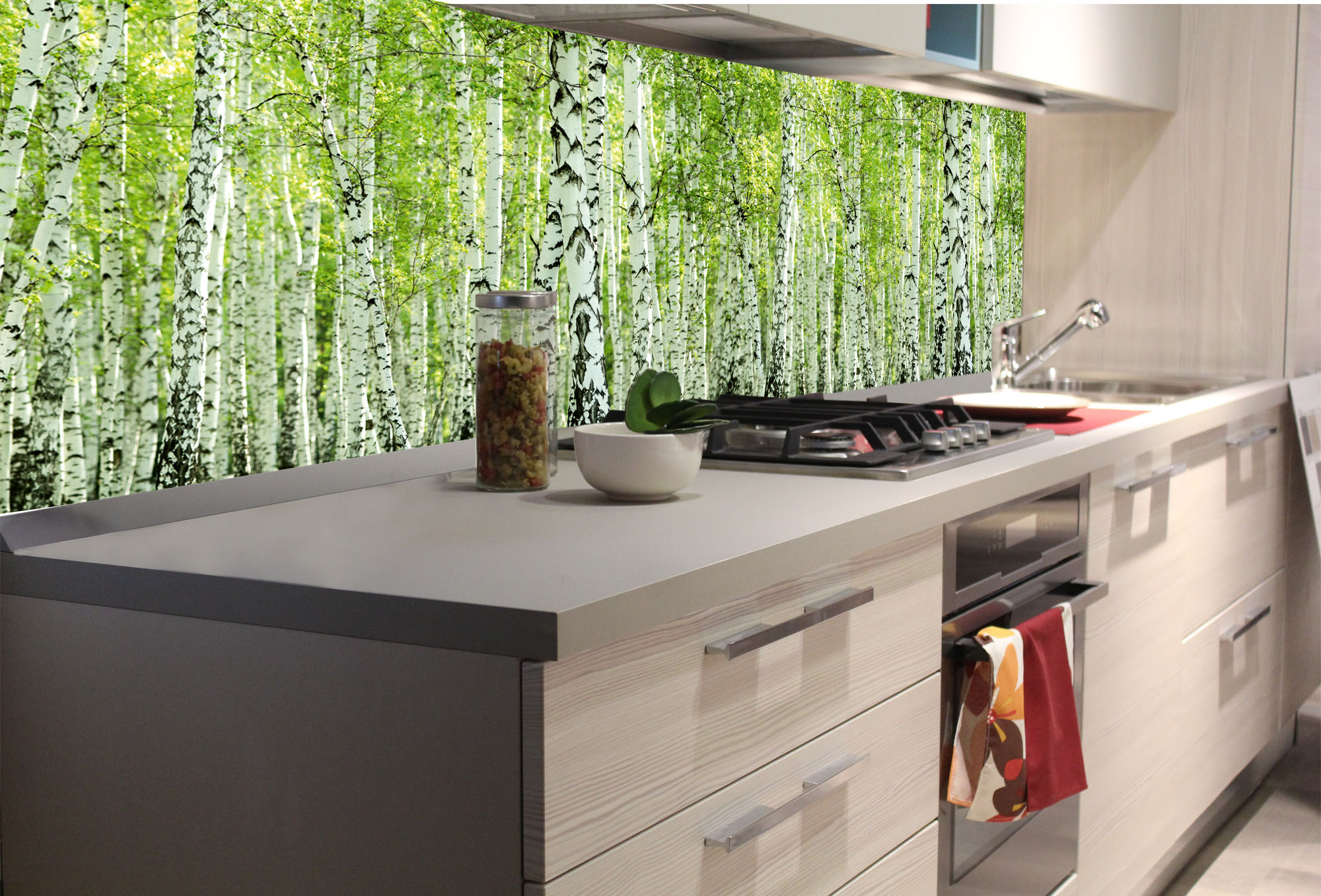 Küchenrückwand Folie - Frühlingsbirkenwald 180 x 60 cm