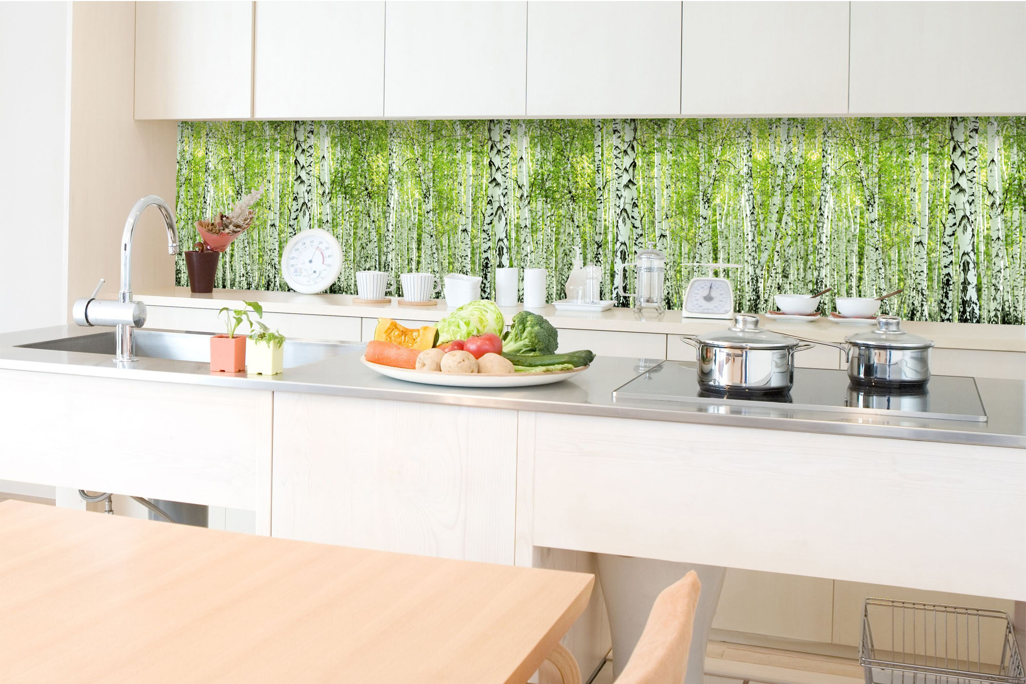 Küchenrückwand Folie - Frühlingsbirkenwald 350 x 60 cm