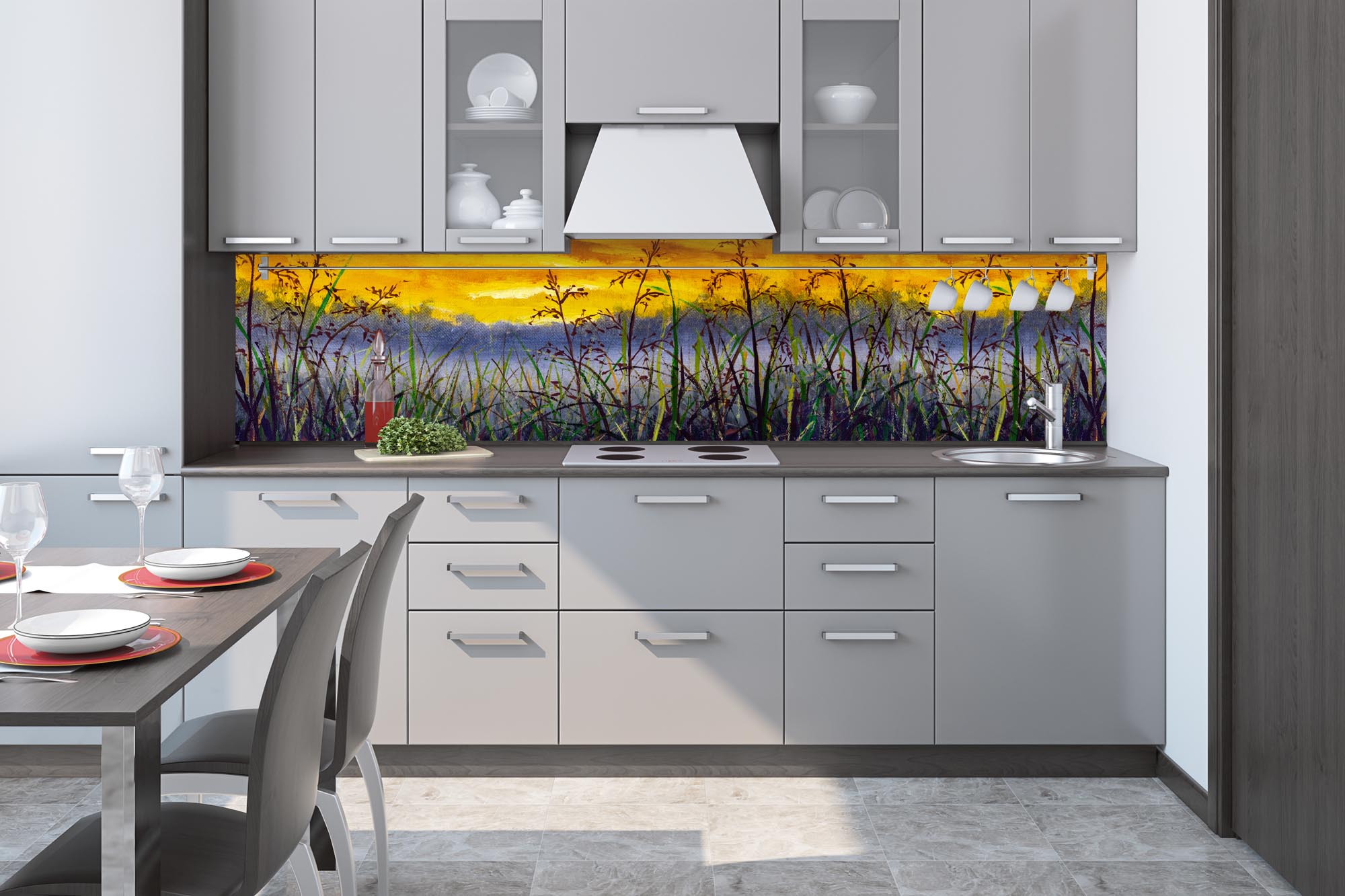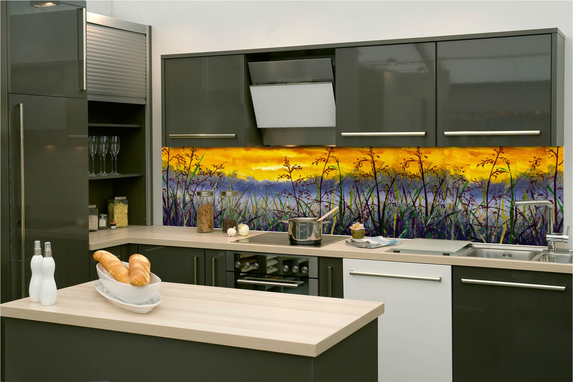 Die neusten Trends im Bereich Küchengestaltung machen auf selbstklebende Fototapeten für die Küchenrückwand aufmerksam. Anstelle einer Fliesenwand in der Küche kann die Rückwand mit einer Folie bedeckt werden.