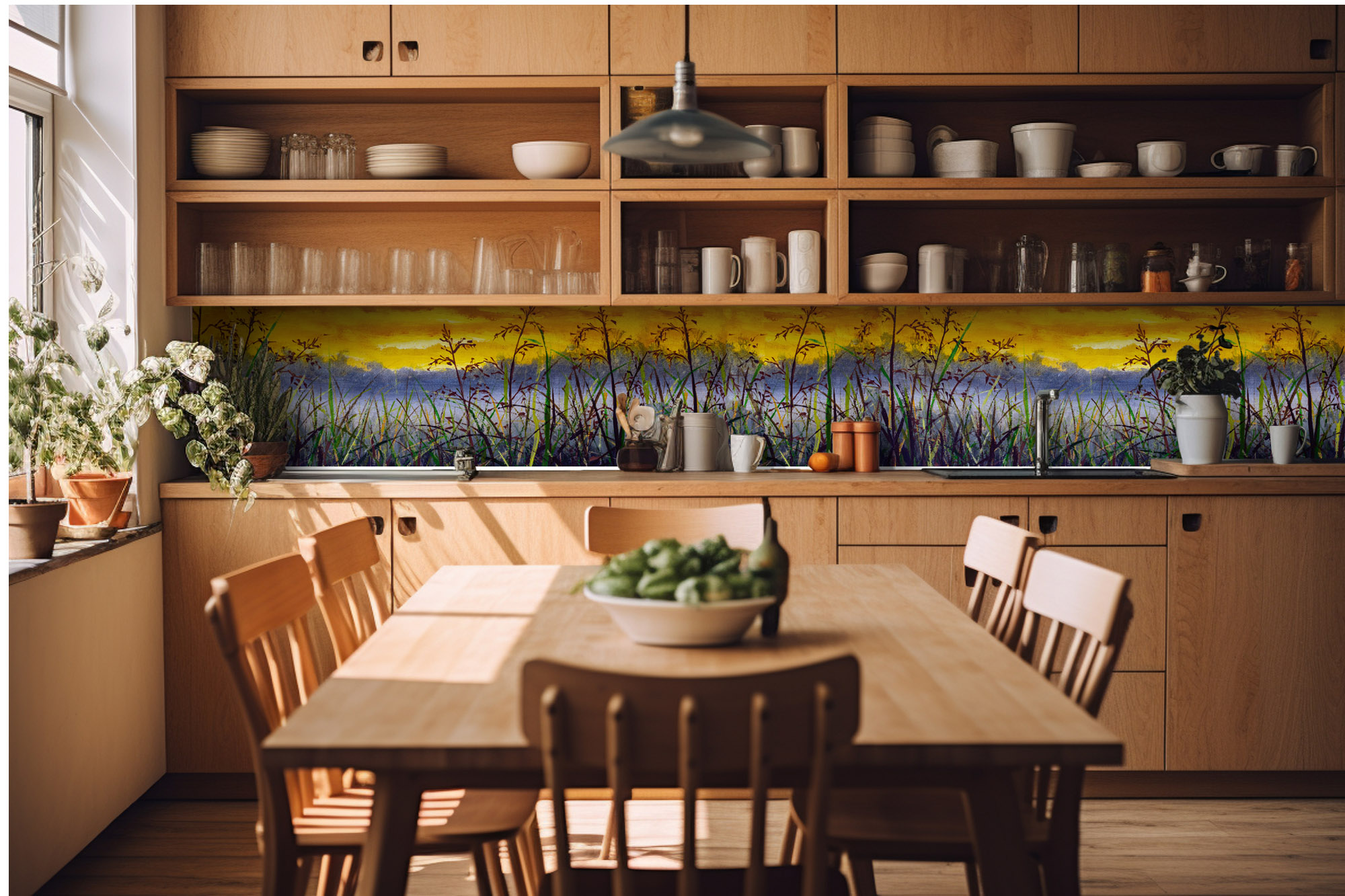 Die neusten Trends im Bereich Küchengestaltung machen auf selbstklebende Fototapeten für die Küchenrückwand aufmerksam. Anstelle einer Fliesenwand in der Küche kann die Rückwand mit einer Folie bedeckt werden.