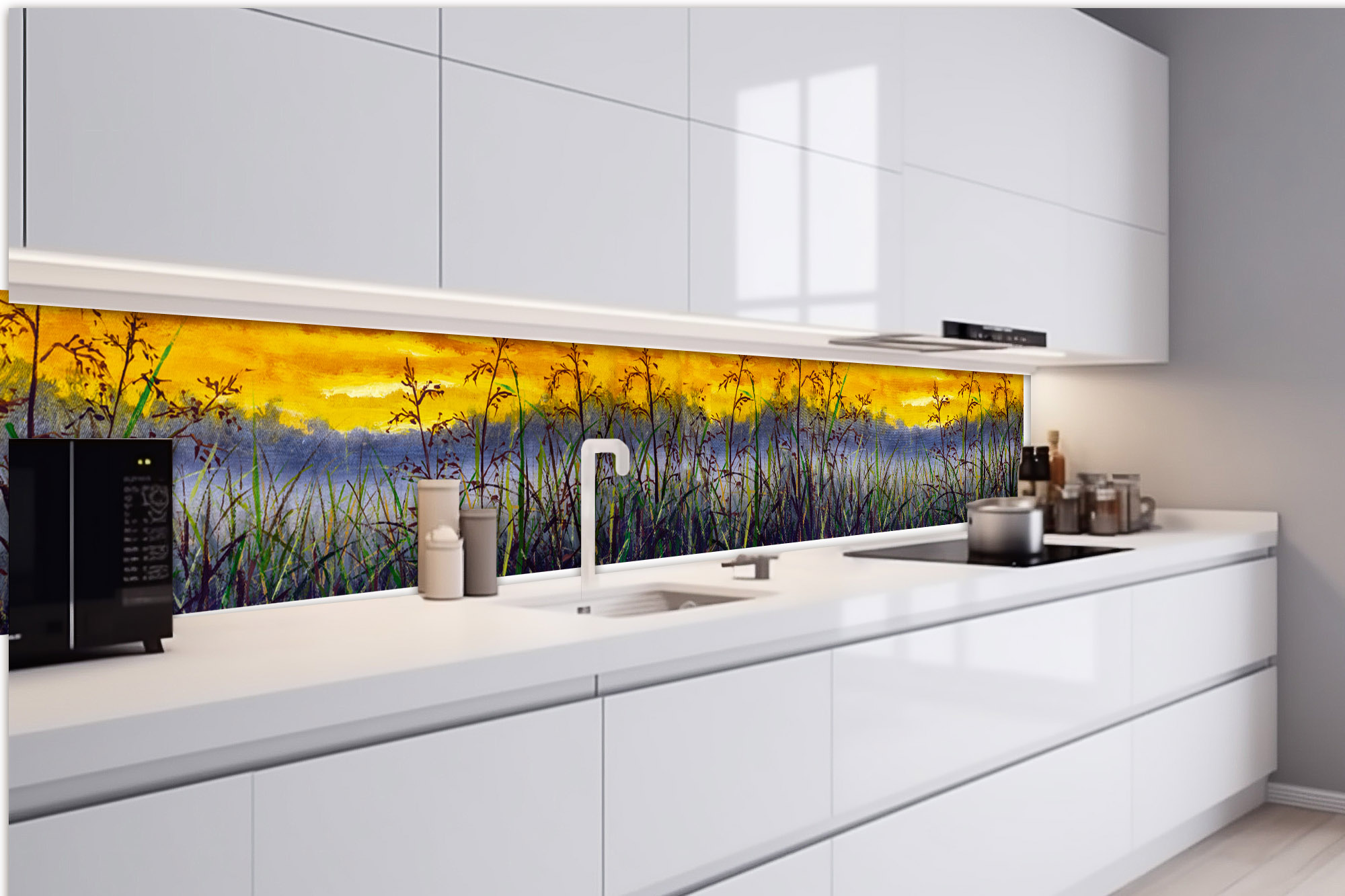 Selbstklebende Fototapete empfehlen wir nicht hinter der Gasherde oder andere Wärmequelle kleben. Fototapete soll von der Wärmequelle mindestens 25 cm entfernt sein. Hohe Temperaturen werden die niedrigere Qualität von Fototapete zur Folge haben.In diesem Falle empfehlen wir Ihnen die Fototapete im Platz der Wärmequelle mit dem Schutzglas zu überlappen oder unsere Küchenrückwand Glaskaufen.