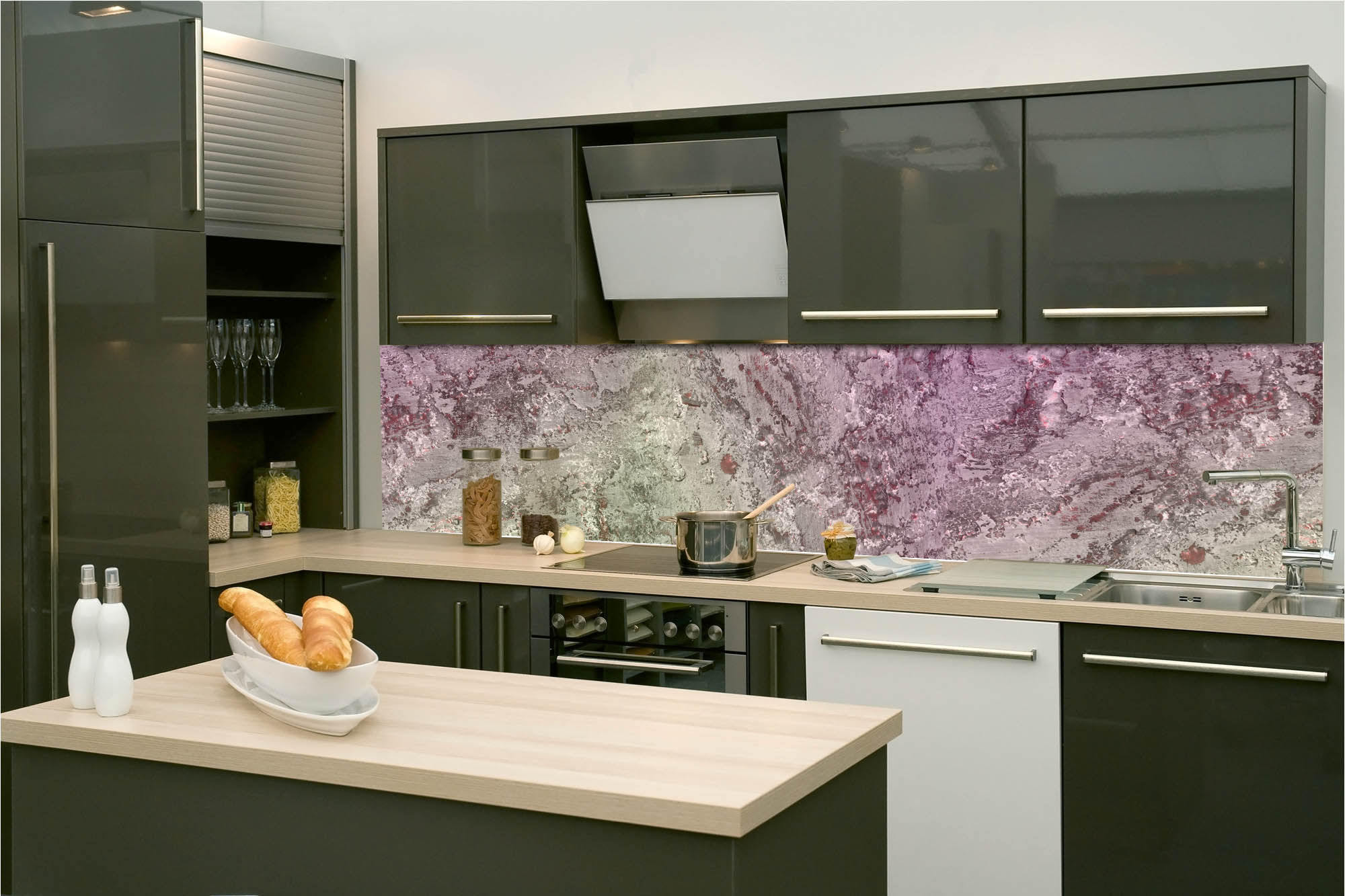 Die neusten Trends im Bereich Küchengestaltung machen auf selbstklebende Fototapeten für die Küchenrückwand aufmerksam. Anstelle einer Fliesenwand in der Küche kann die Rückwand mit einer Folie bedeckt werden.