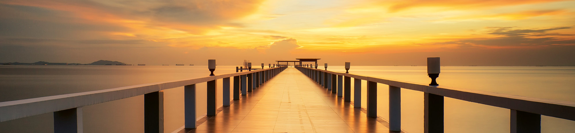 Küchenrückwand Folie - Holzbrücke bei Sonnenaufgang 260 x 60 cm