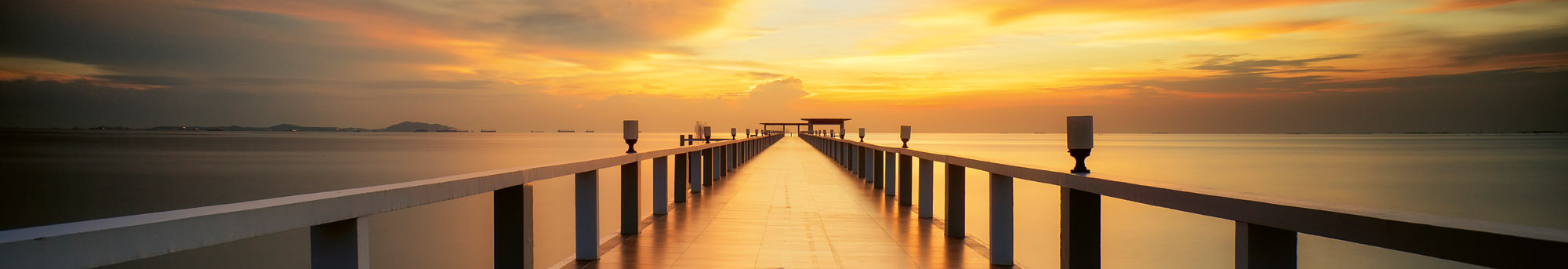 Küchenrückwand Folie - Holzbrücke bei Sonnenaufgang 350 x 60 cm