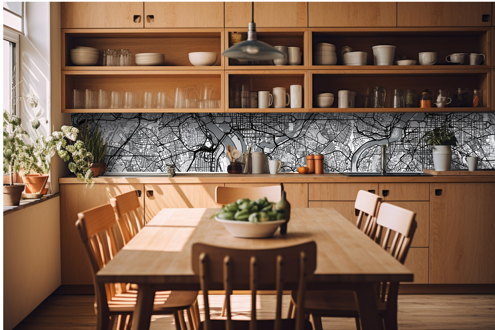 Die neusten Trends im Bereich Küchengestaltung machen auf selbstklebende Fototapeten für die Küchenrückwand aufmerksam. Anstelle einer Fliesenwand in der Küche kann die Rückwand mit einer Folie bedeckt werden.
