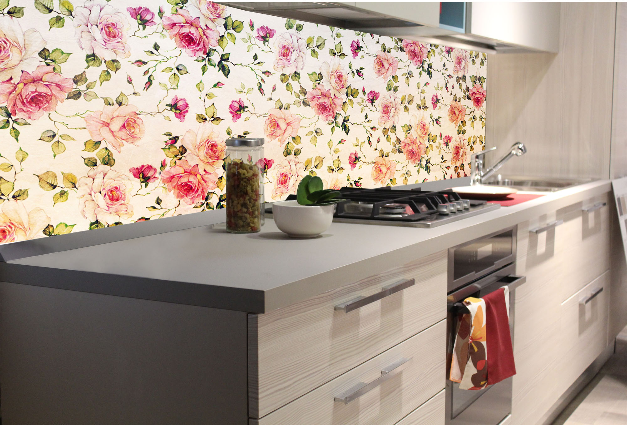 Küchenrückwand Folie - Kleine Rosen 180 x 60 cm