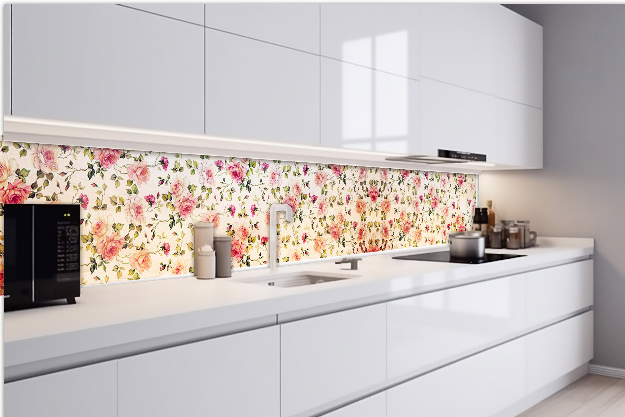 Küchenrückwand Folie - Kleine Rosen 420 x 60 cm