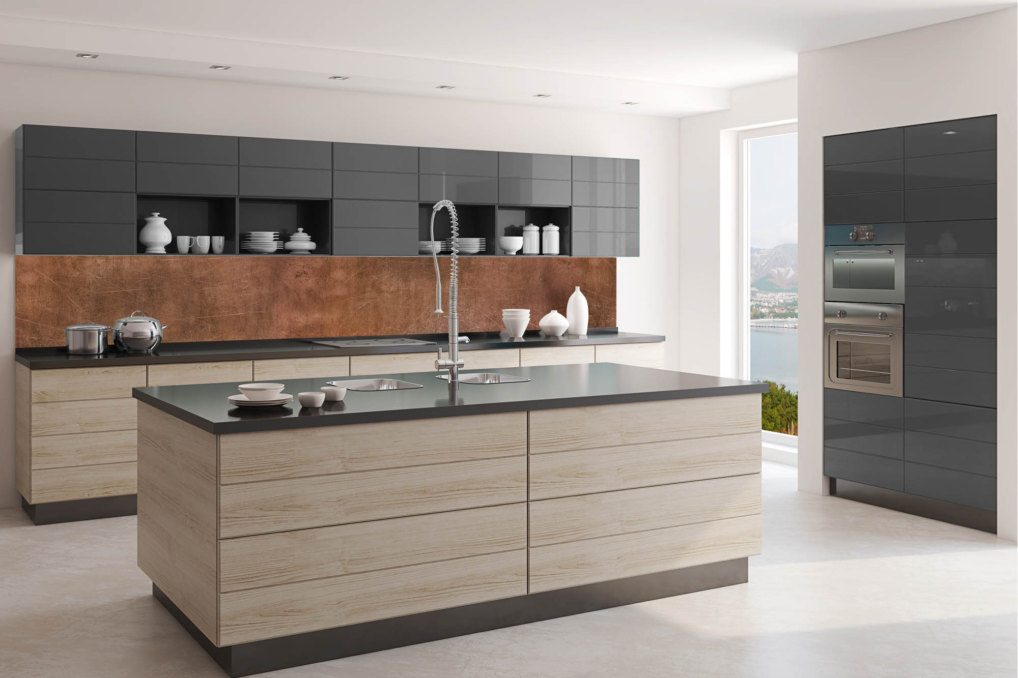 Die neusten Trends im Bereich Küchengestaltung machen auf selbstklebende Fototapeten für die Küchenrückwand aufmerksam. Anstelle einer Fliesenwand in der Küche kann die Rückwand mit einer Folie bedeckt werden.