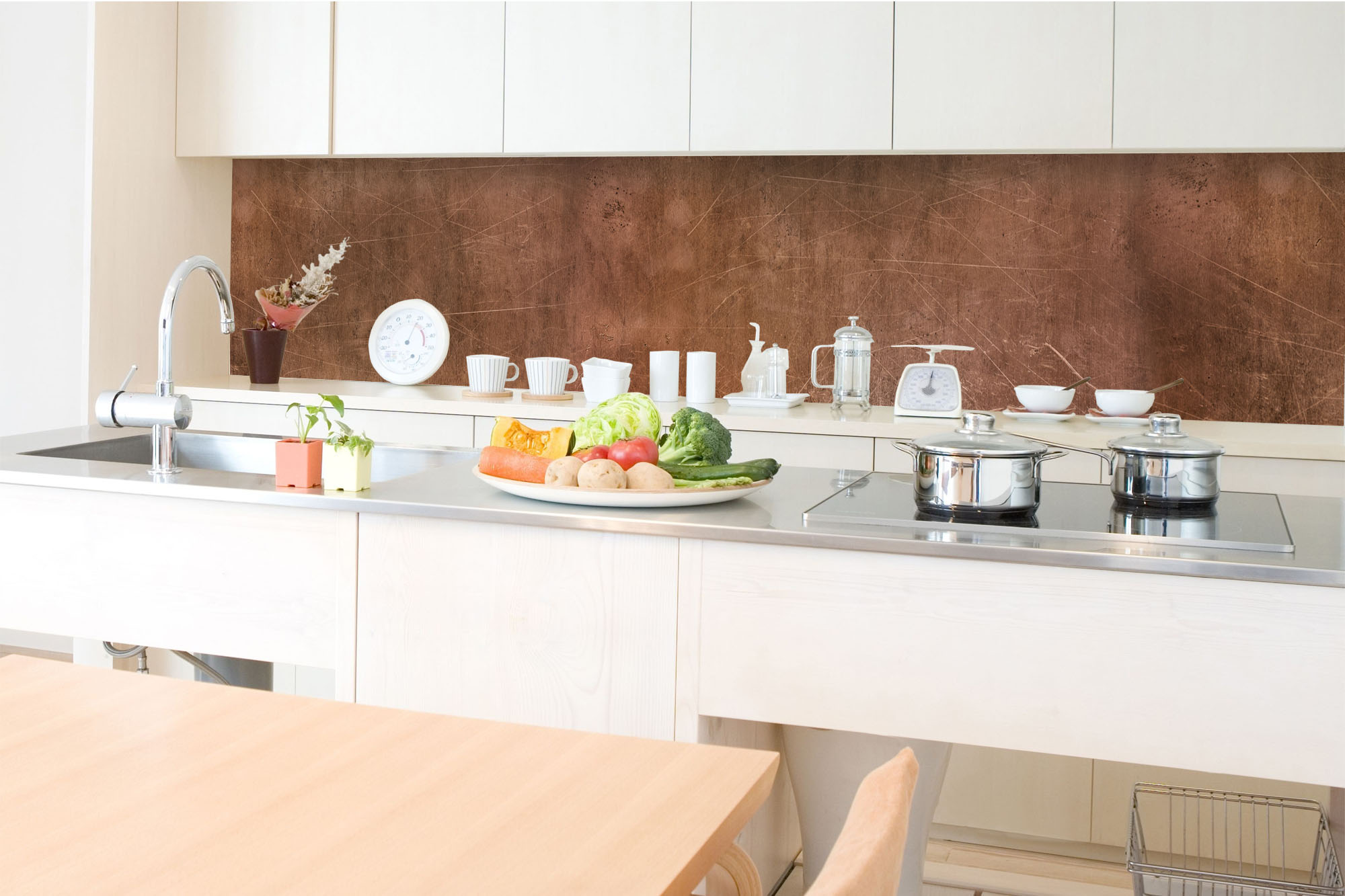 Küchenrückwandfolie lässt sich ausschließlich auf die nicht-saugfähige Unterlage kleben (Glas, Holz, keramische Fließen).