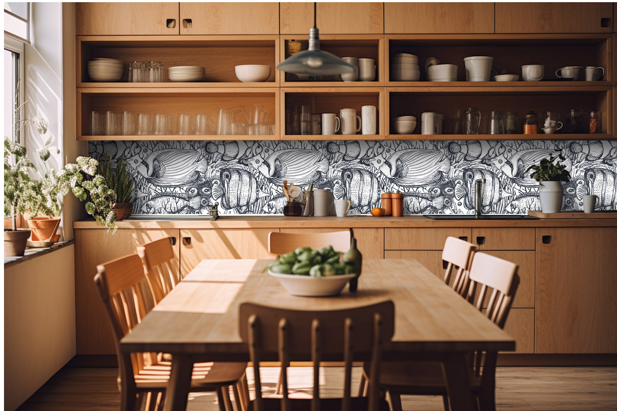 Küchenrückwand Folie - Monochrome Fische 420 x 60 cm