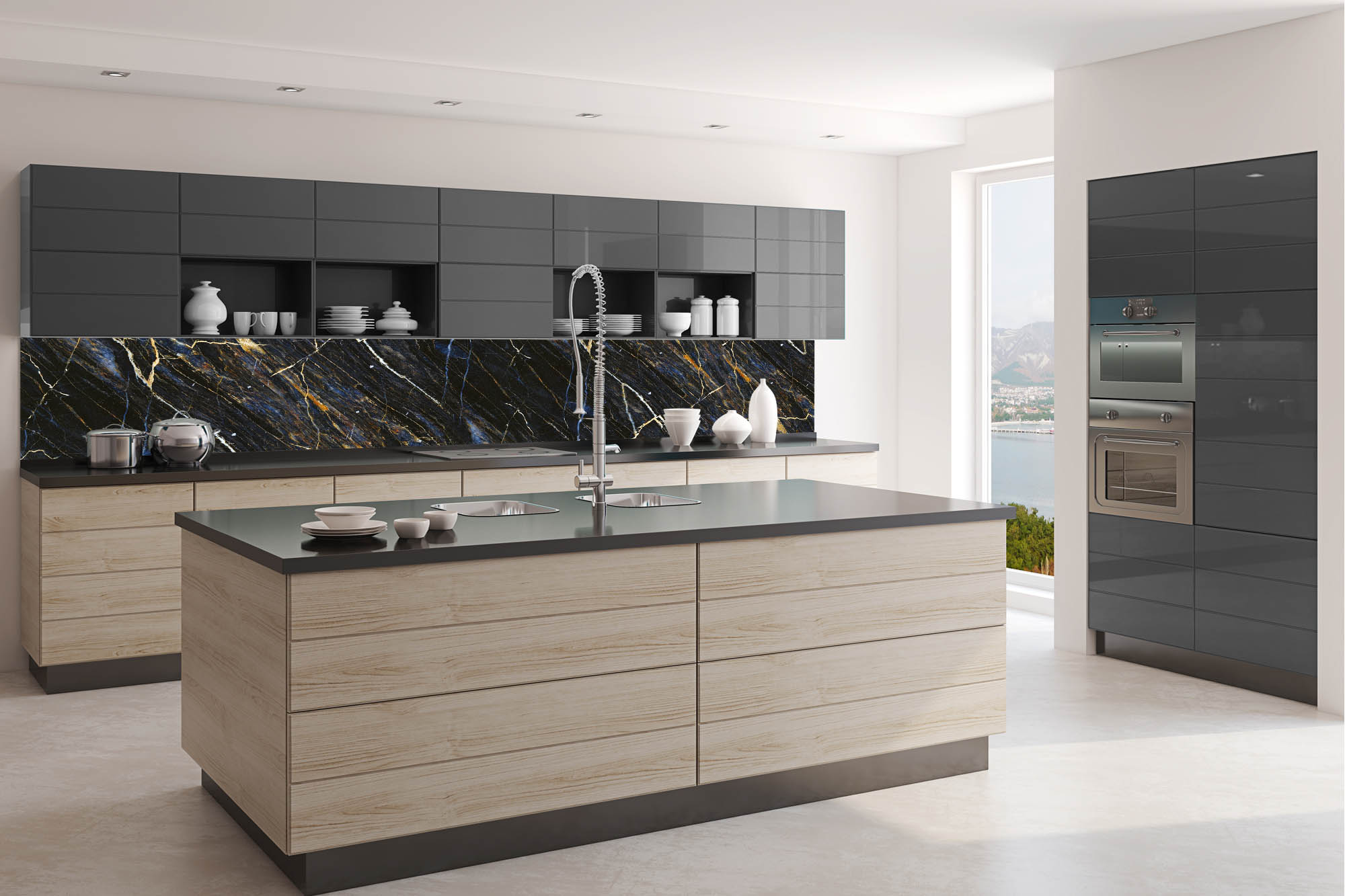 Die neusten Trends im Bereich Küchengestaltung machen auf selbstklebende Fototapeten für die Küchenrückwand aufmerksam. Anstelle einer Fliesenwand in der Küche kann die Rückwand mit einer Folie bedeckt werden.