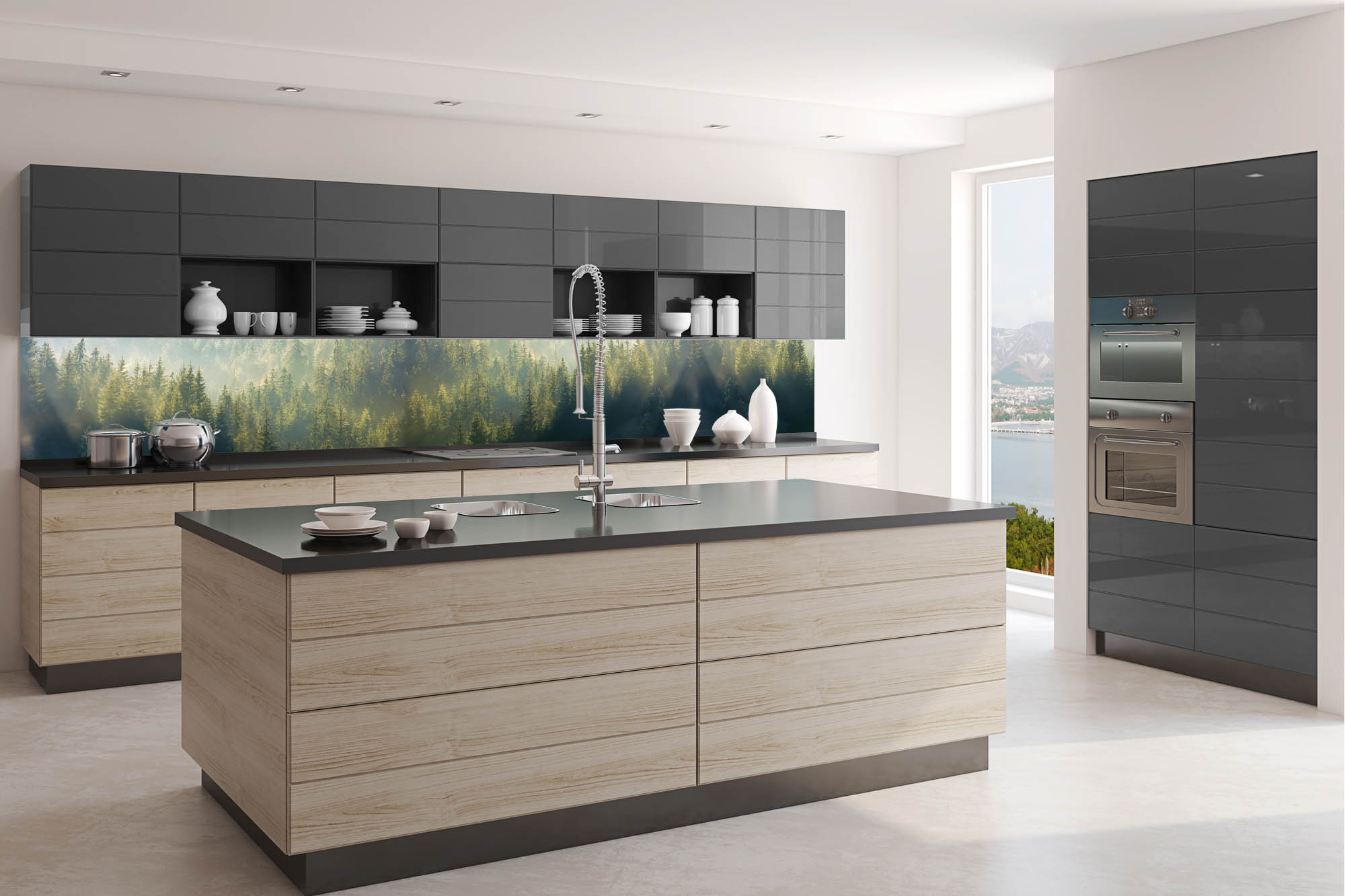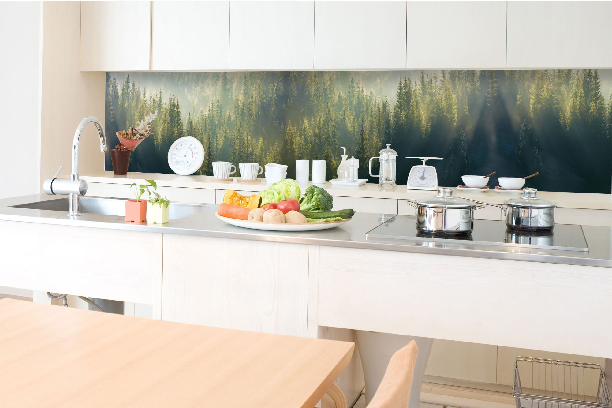 Die neusten Trends im Bereich Küchengestaltung machen auf selbstklebende Fototapeten für die Küchenrückwand aufmerksam. Anstelle einer Fliesenwand in der Küche kann die Rückwand mit einer Folie bedeckt werden.