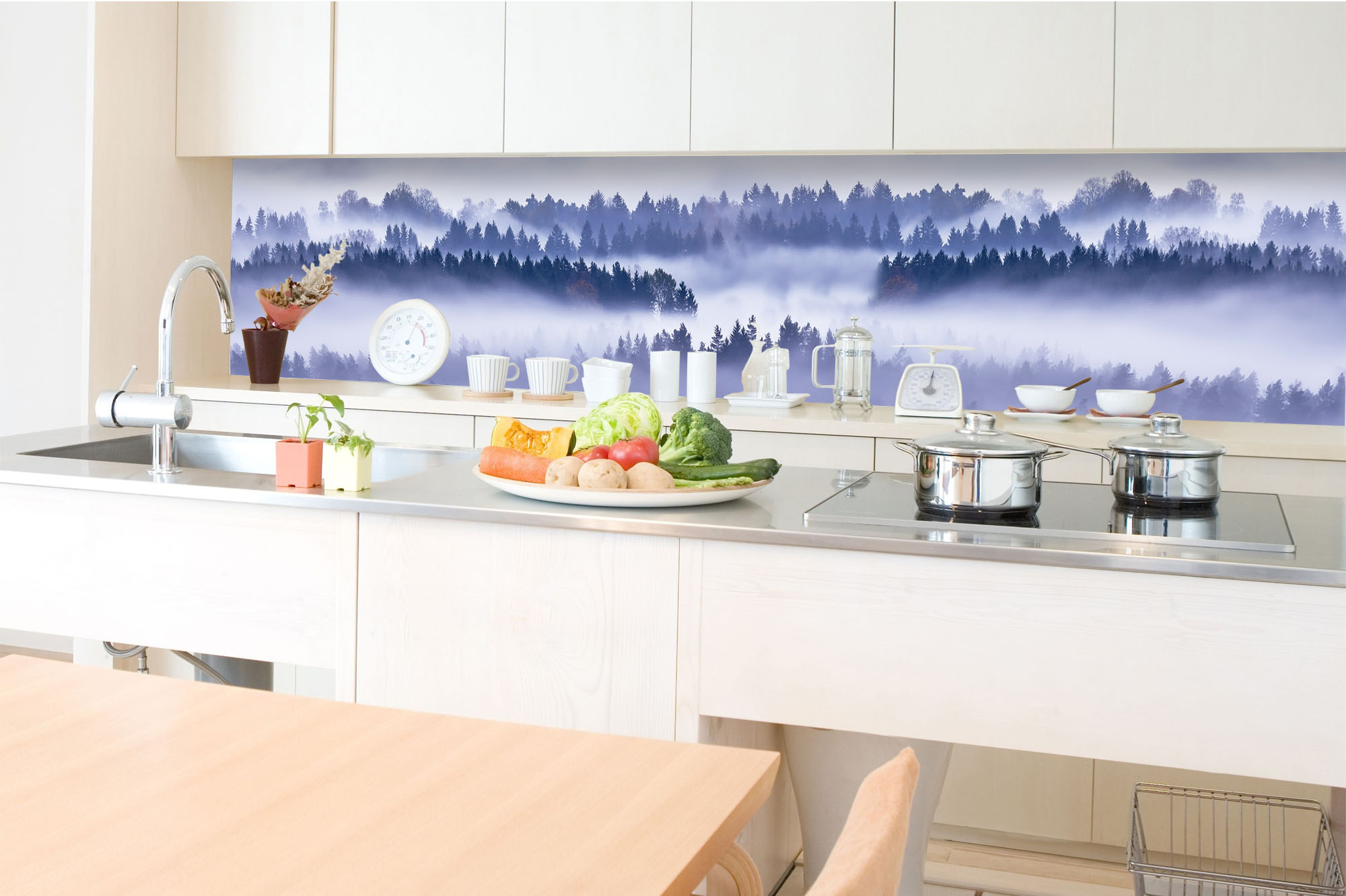Die neusten Trends im Bereich Küchengestaltung machen auf selbstklebende Fototapeten für die Küchenrückwand aufmerksam. Anstelle einer Fliesenwand in der Küche kann die Rückwand mit einer Folie bedeckt werden.