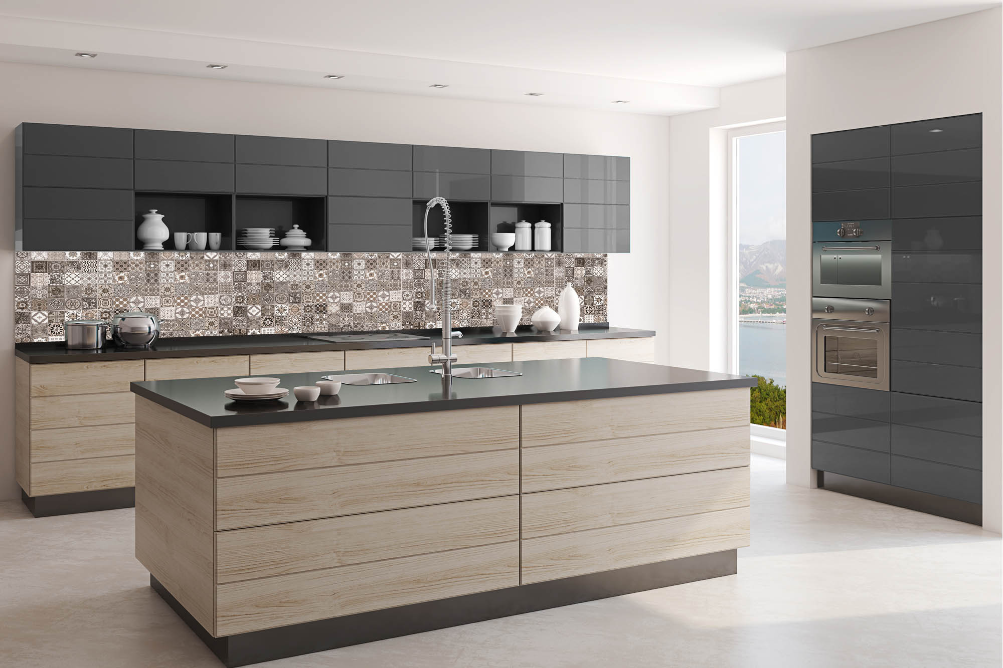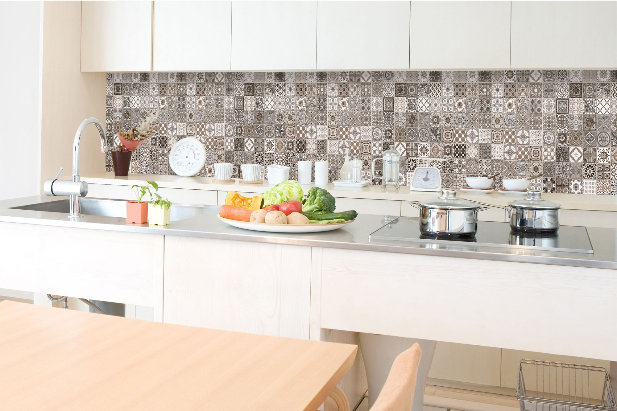 Küchenrückwandfolie lässt sich ausschließlich auf die nicht-saugfähige Unterlage kleben (Glas, Holz, keramische Fließen).