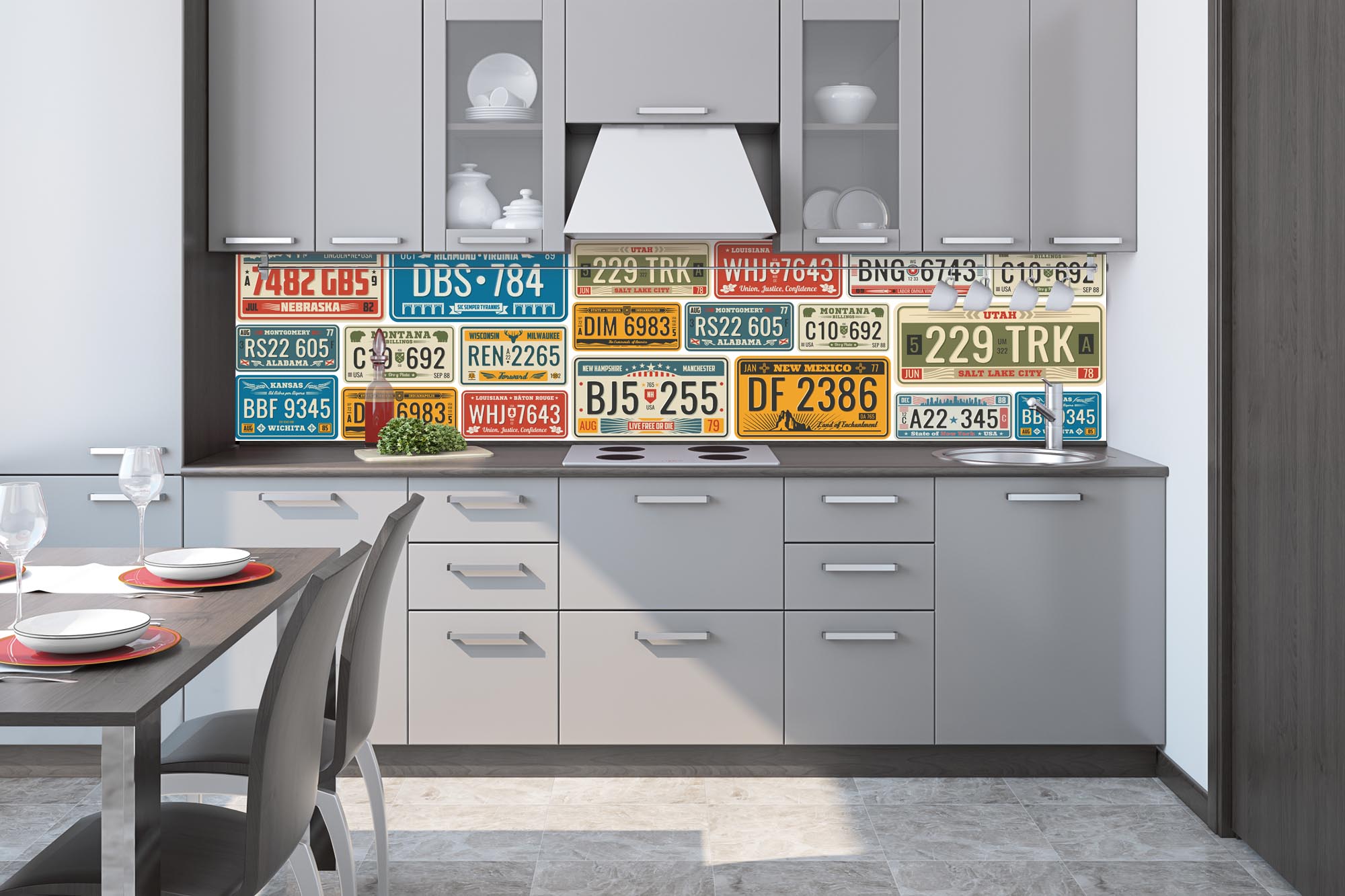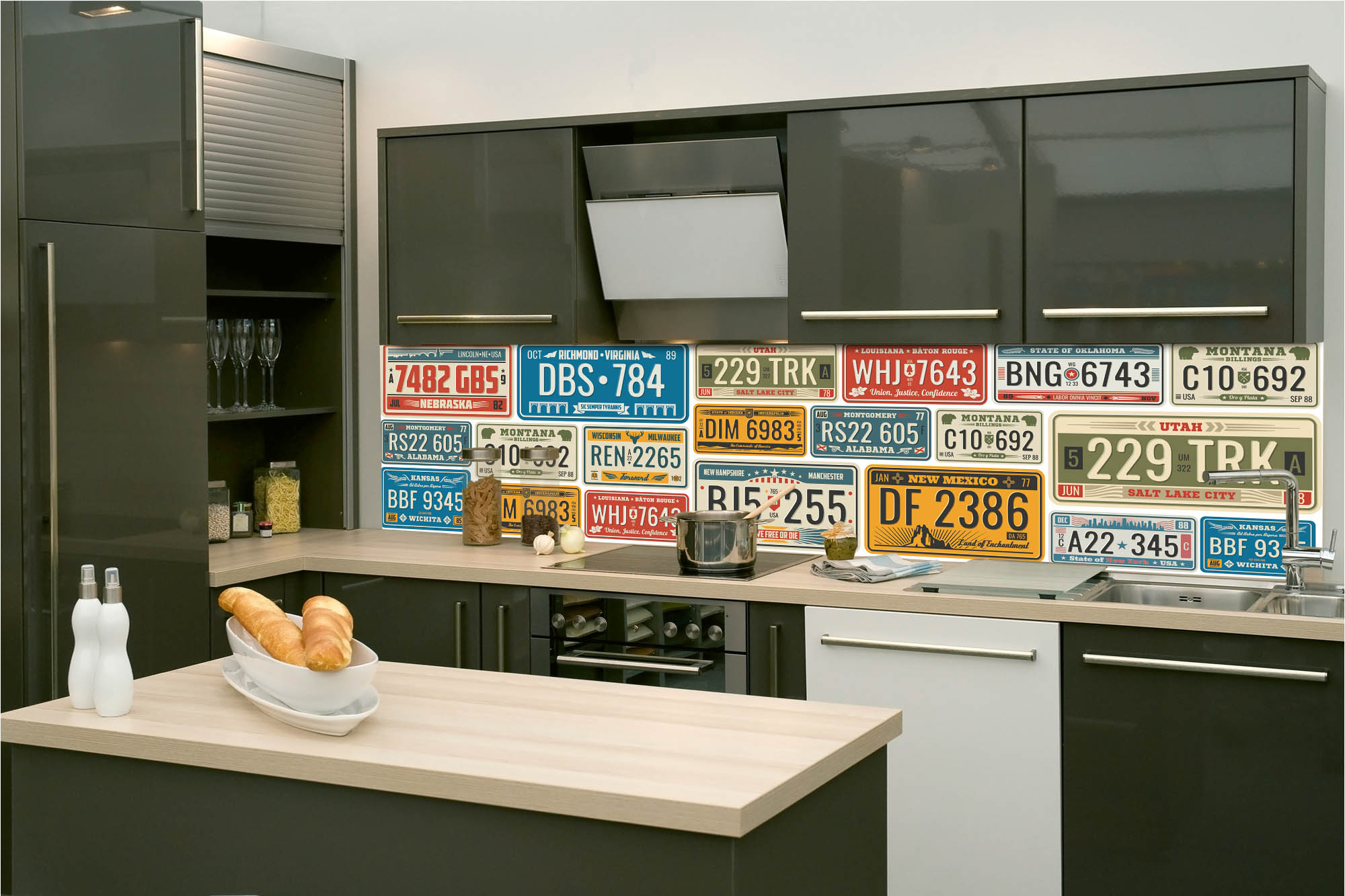 Küchenrückwand Folie - Retro-Autokennzeichen 260 x 60 cm