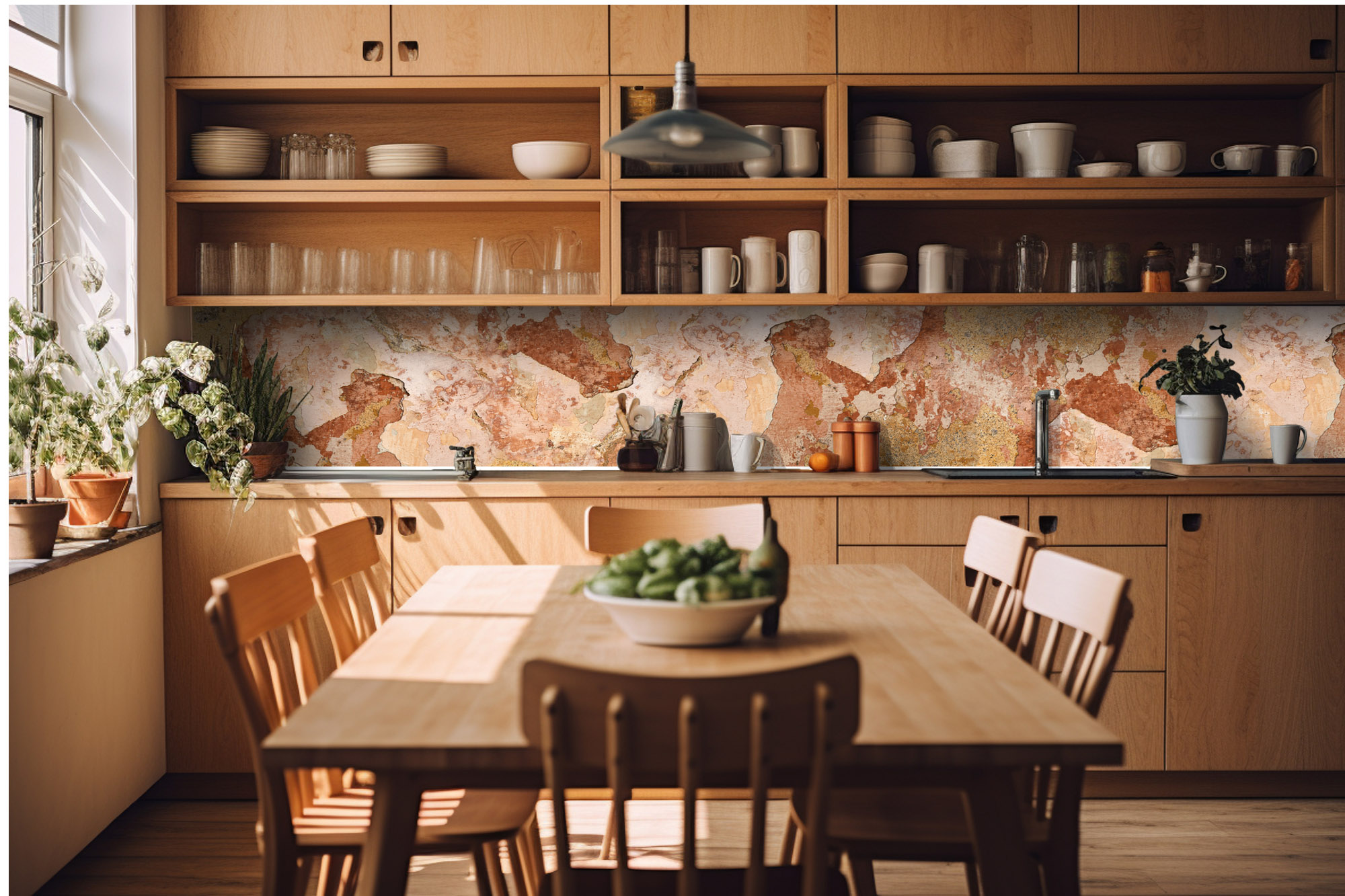 Die neusten Trends im Bereich Küchengestaltung machen auf selbstklebende Fototapeten für die Küchenrückwand aufmerksam. Anstelle einer Fliesenwand in der Küche kann die Rückwand mit einer Folie bedeckt werden.