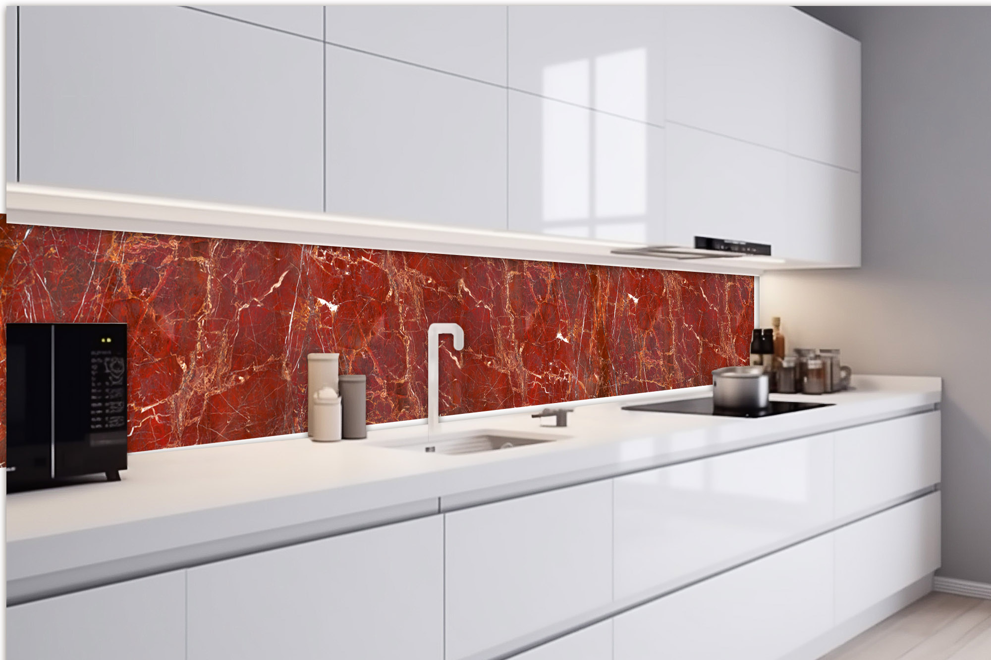 Küchenrückwand Folie - Rote Marmor-Onyx-Textur 420 x 60 cm