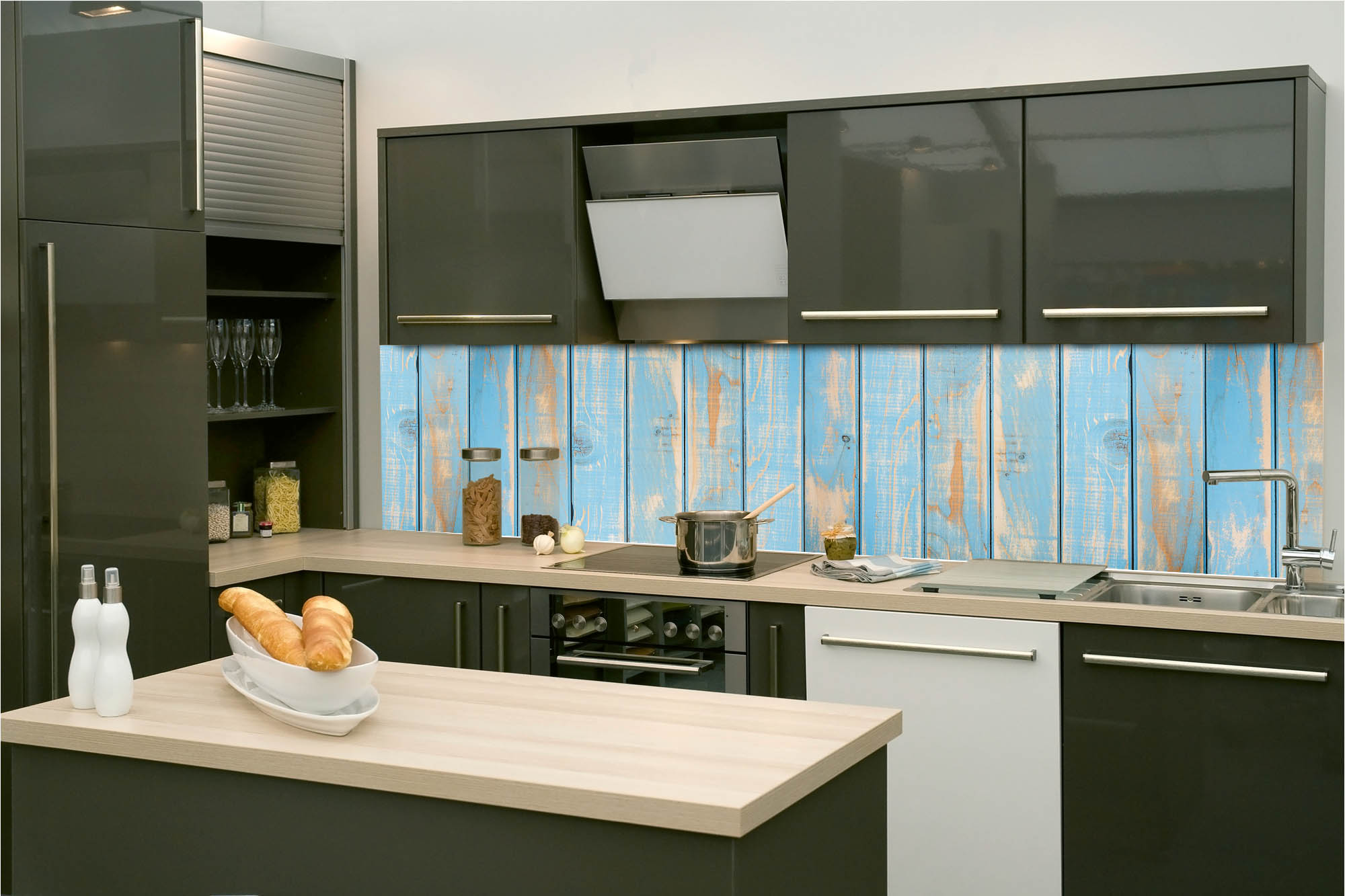 Küchenrückwandfolie lässt sich ausschließlich auf die nicht-saugfähige Unterlage kleben (Glas, Holz, keramische Fließen).