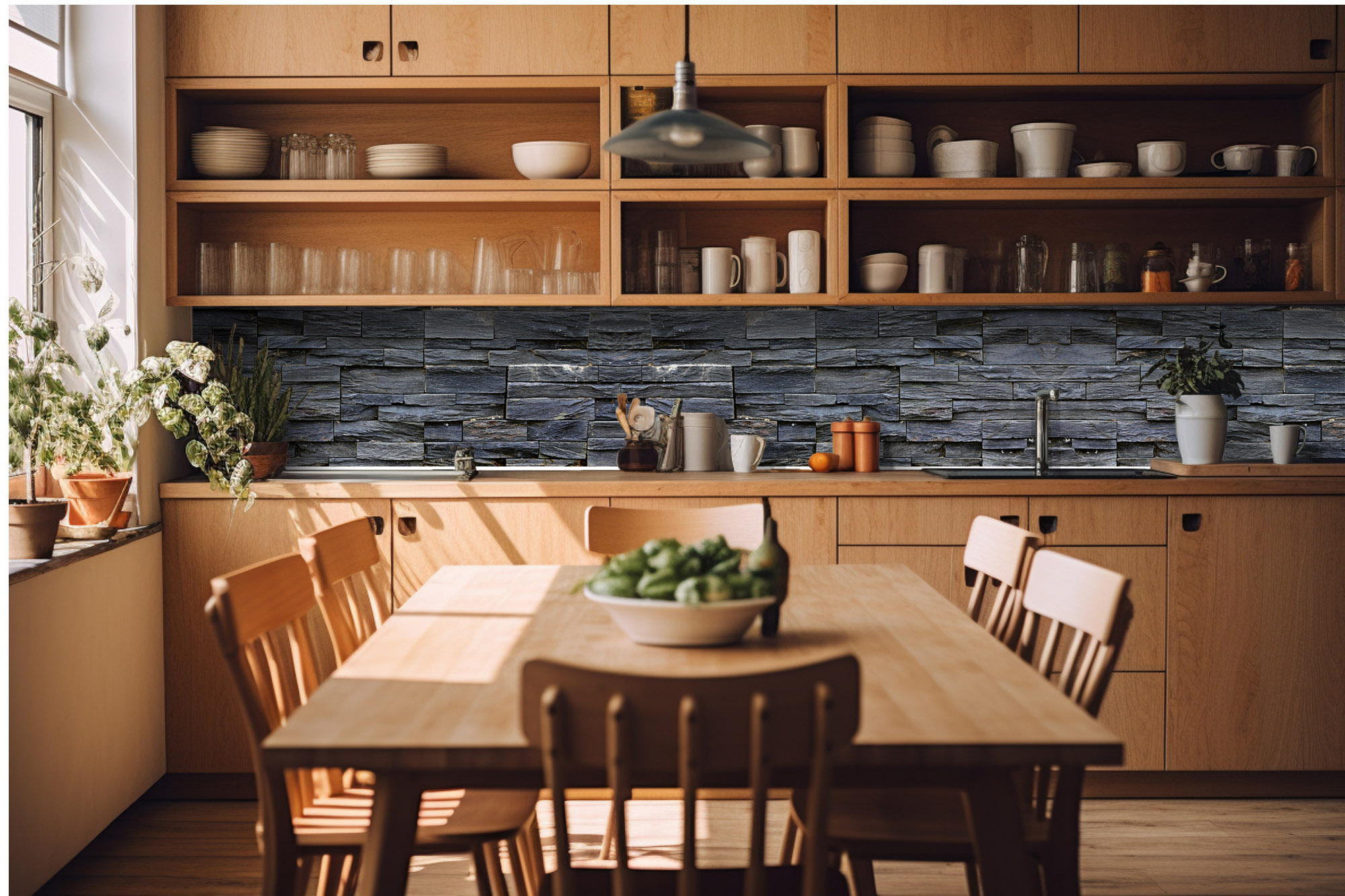 Küchenrückwand Folie - Schiefersteinmauer 420 x 60 cm