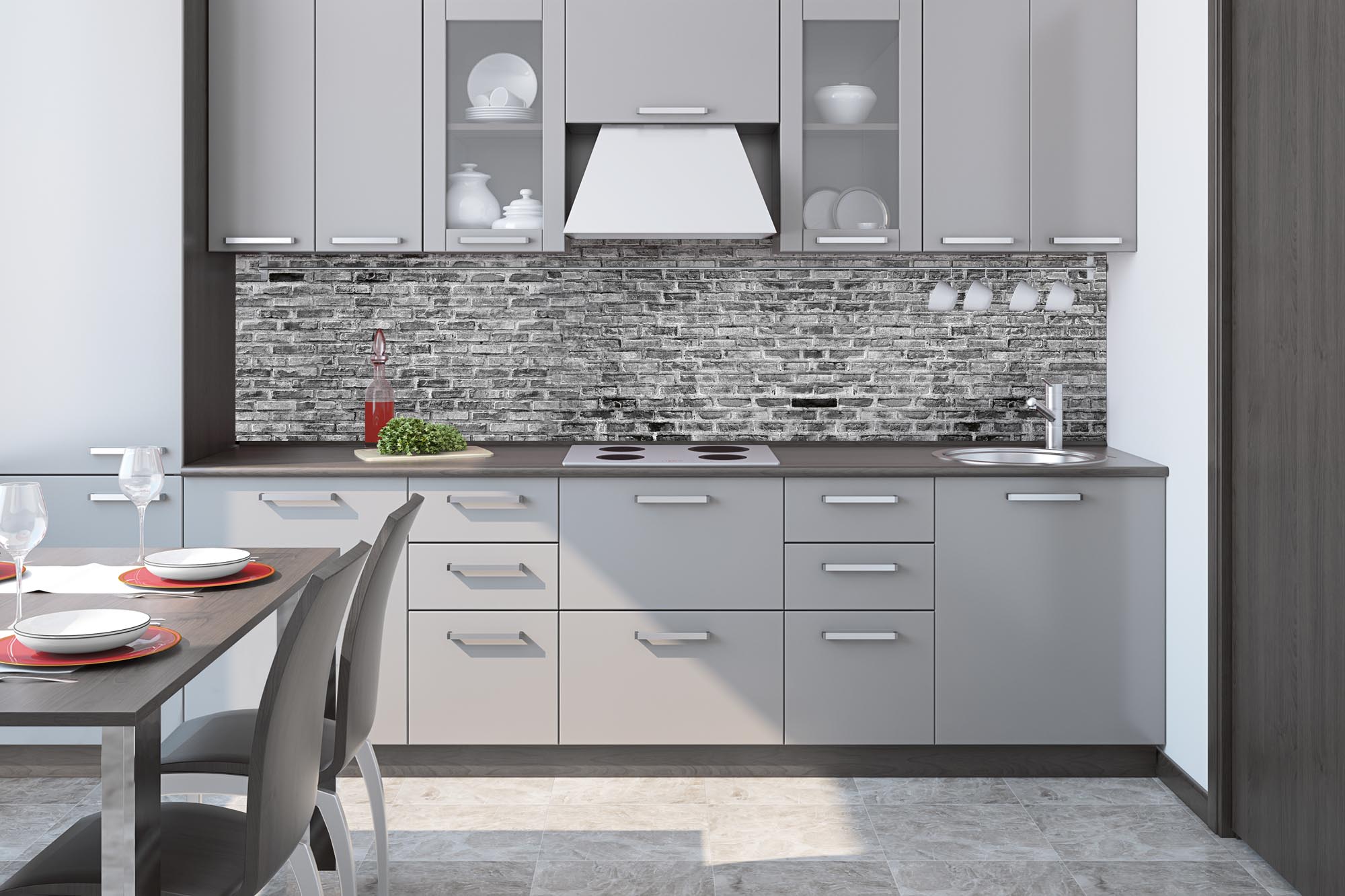 Küchenrückwandfolie lässt sich ausschließlich auf die nicht-saugfähige Unterlage kleben (Glas, Holz, keramische Fließen).