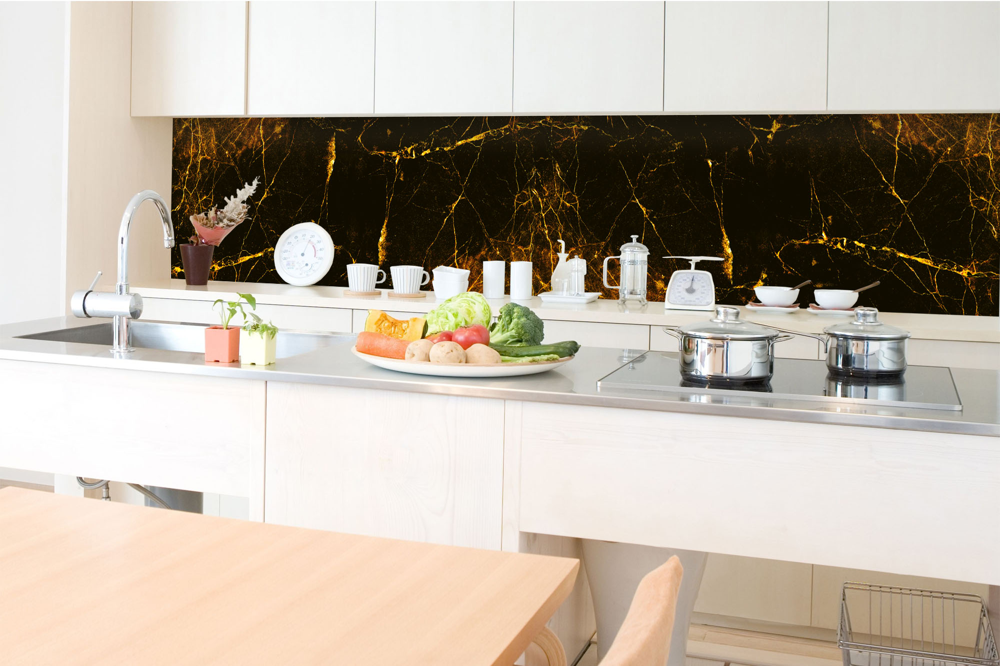Küchenrückwand Folie - Schwarzgoldener Marmor 350 x 60 cm
