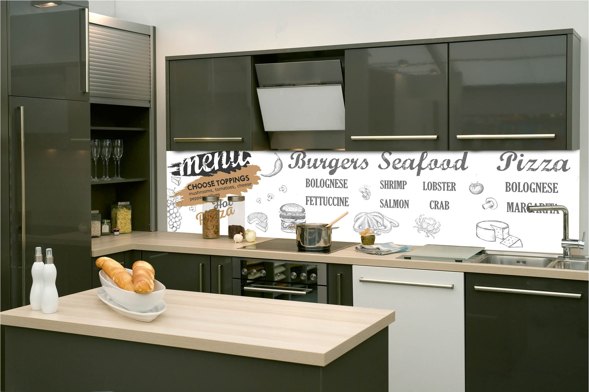 Die neusten Trends im Bereich Küchengestaltung machen auf selbstklebende Fototapeten für die Küchenrückwand aufmerksam. Anstelle einer Fliesenwand in der Küche kann die Rückwand mit einer Folie bedeckt werden.