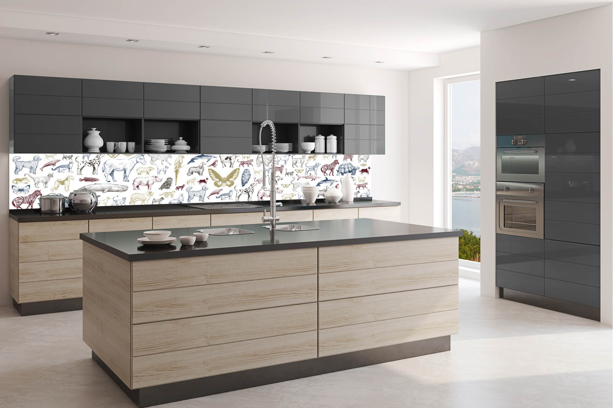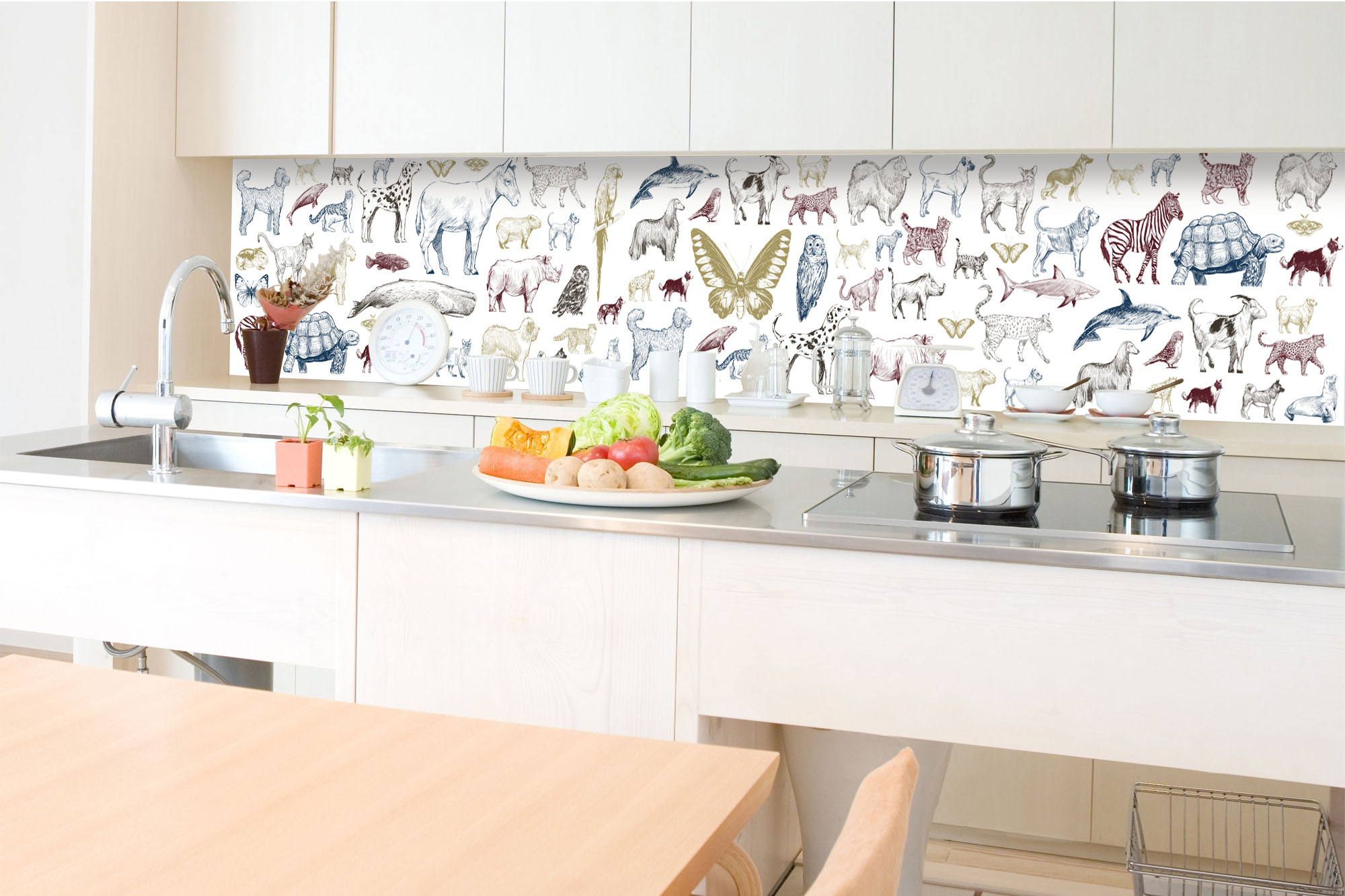Küchenrückwand Folie - Tiersammlung 350 x 60 cm