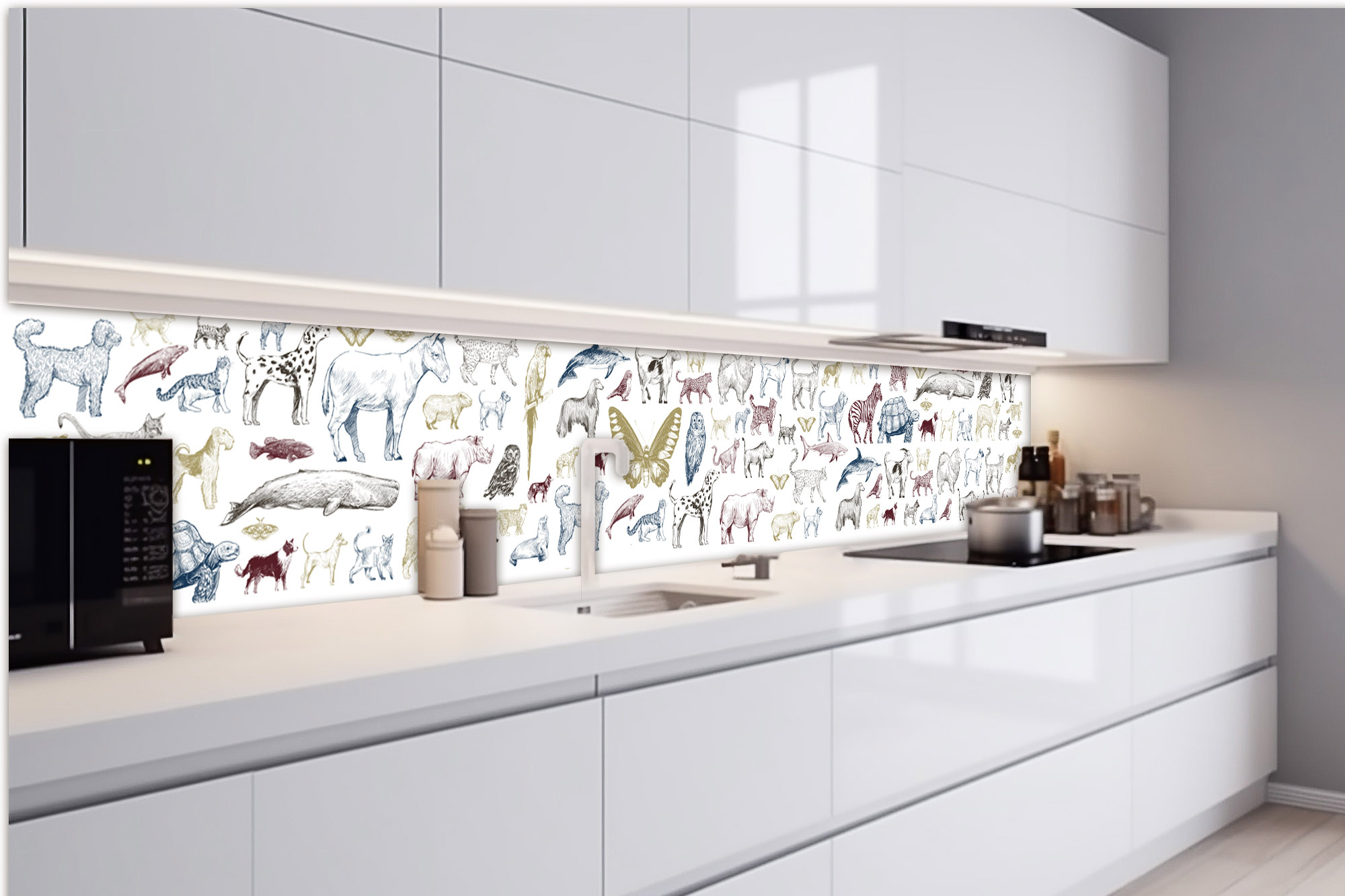 Küchenrückwand Folie - Tiersammlung 420 x 60 cm