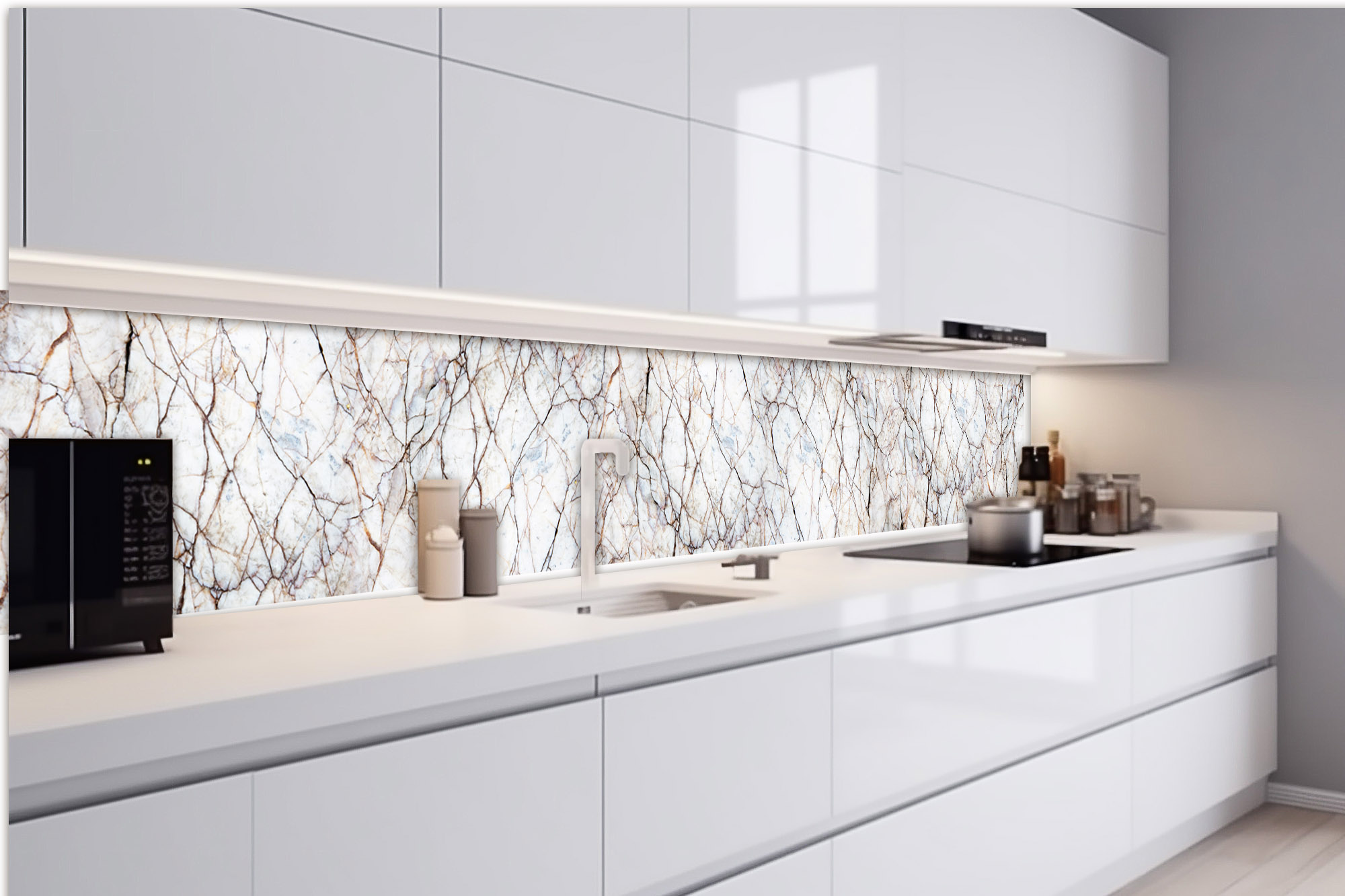 Küchenrückwand Folie - Weiße Marmorstruktur 420 x 60 cm