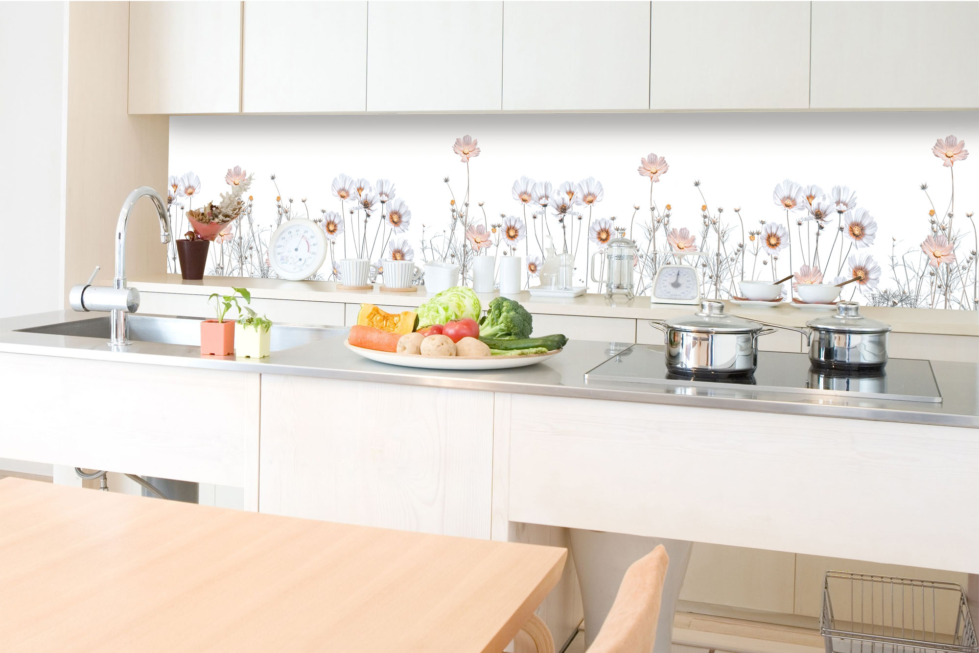 Die neusten Trends im Bereich Küchengestaltung machen auf selbstklebende Fototapeten für die Küchenrückwand aufmerksam. Anstelle einer Fliesenwand in der Küche kann die Rückwand mit einer Folie bedeckt werden.