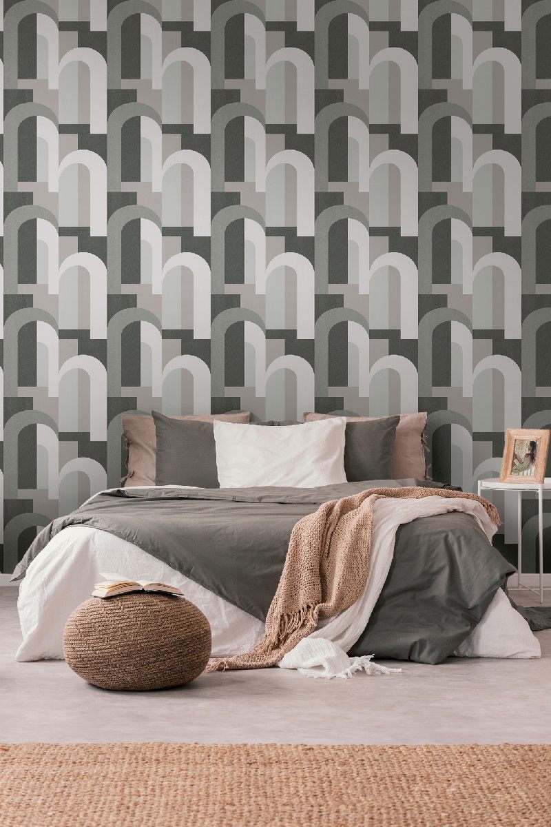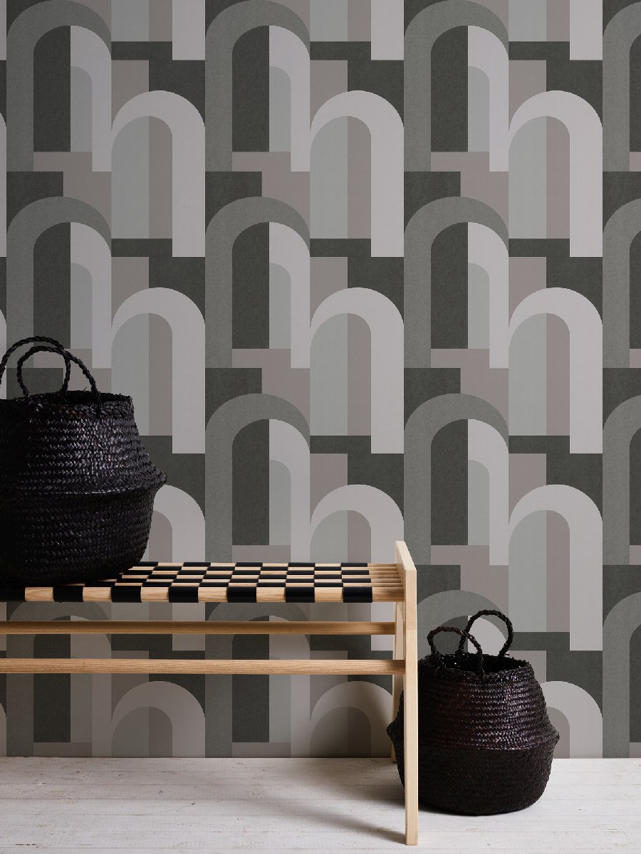 Vliestapete AP Arcade 391704 - Art Deco Muster - Grau, Schwarz