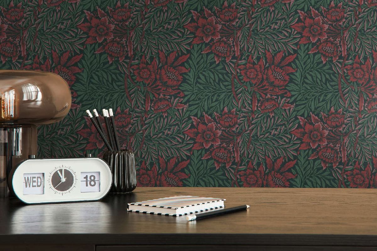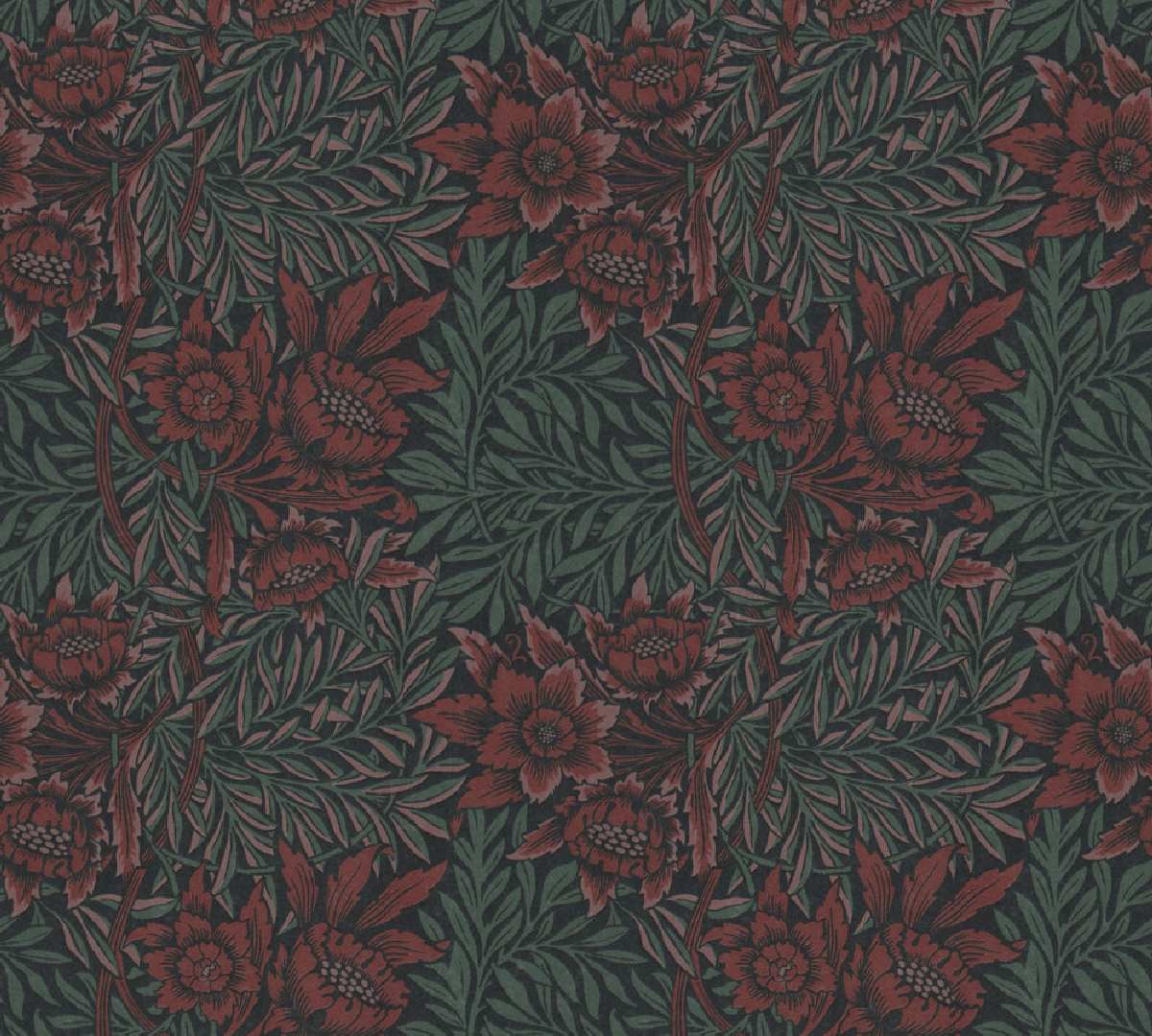 Vliestapete Art of Eden 390581 - Blumentapete Muster - Grün, Rot